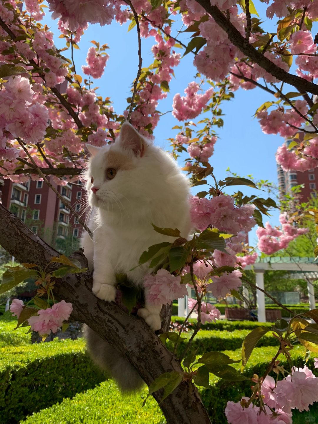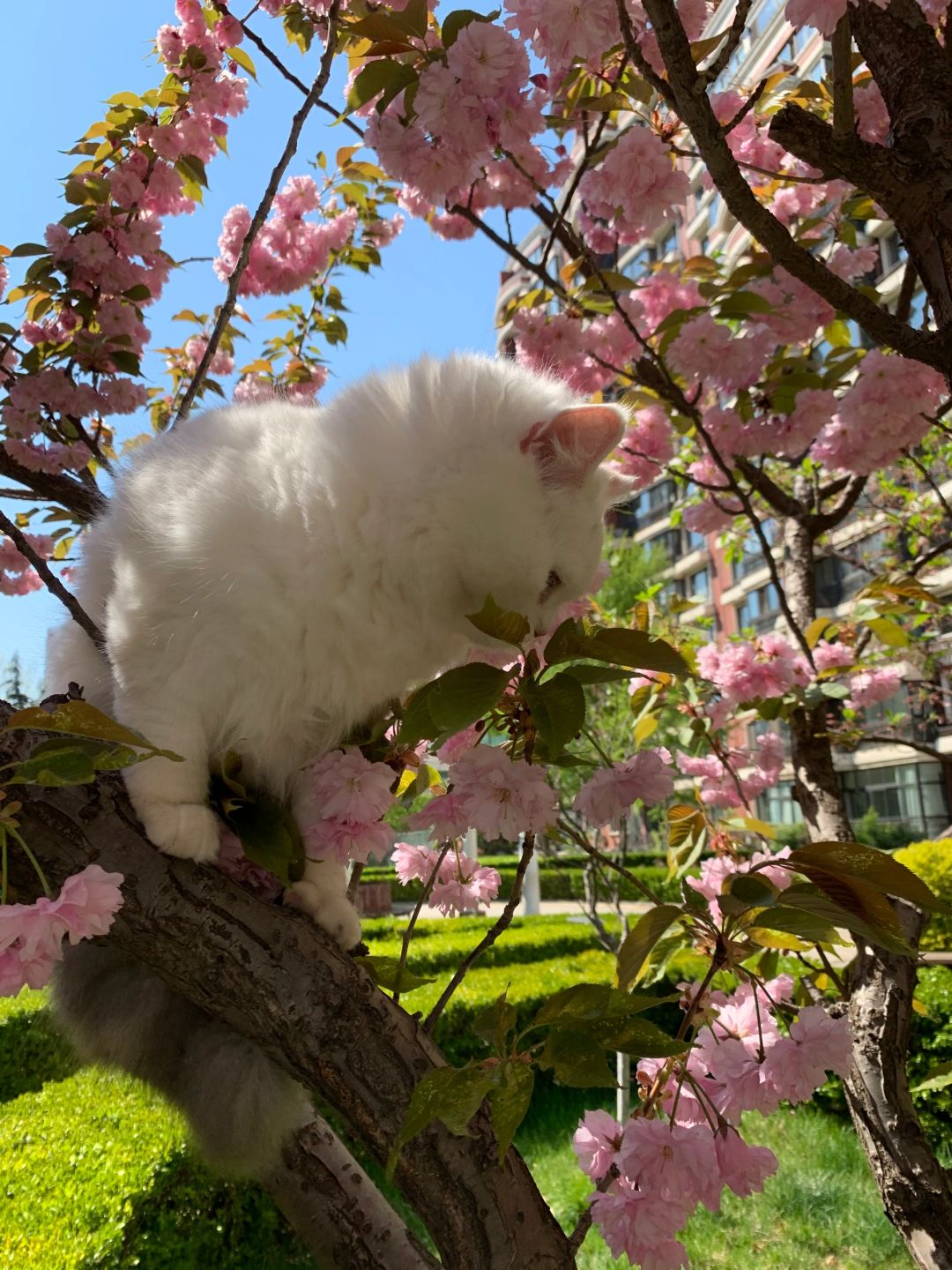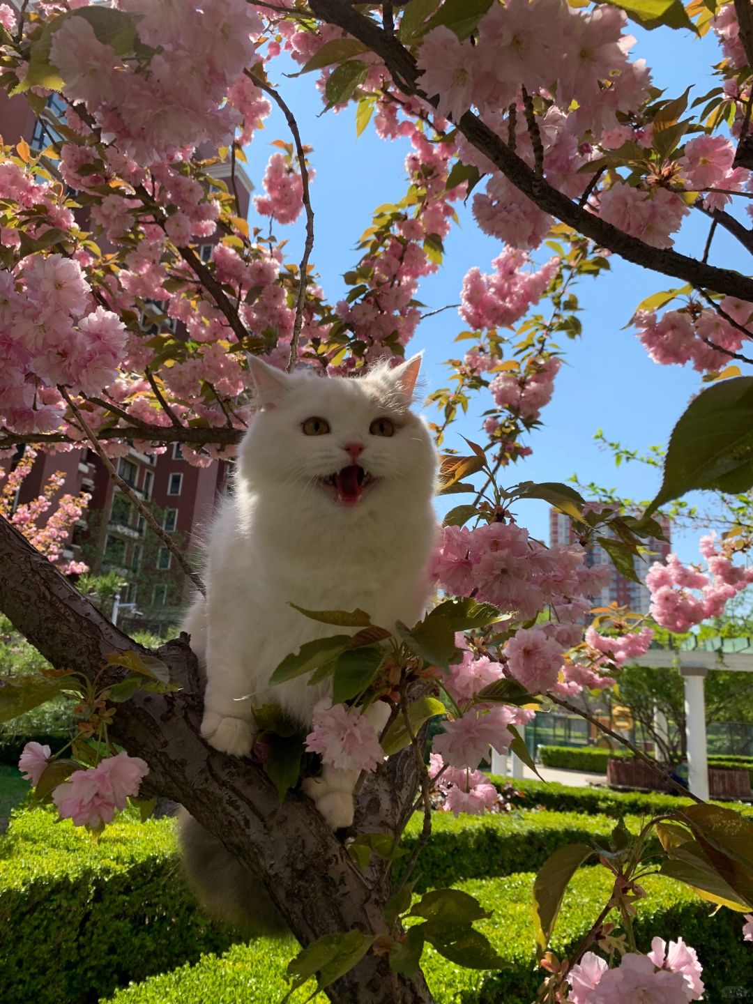 表演型猫格 猫面樱花相映红,小白就是小仙女。