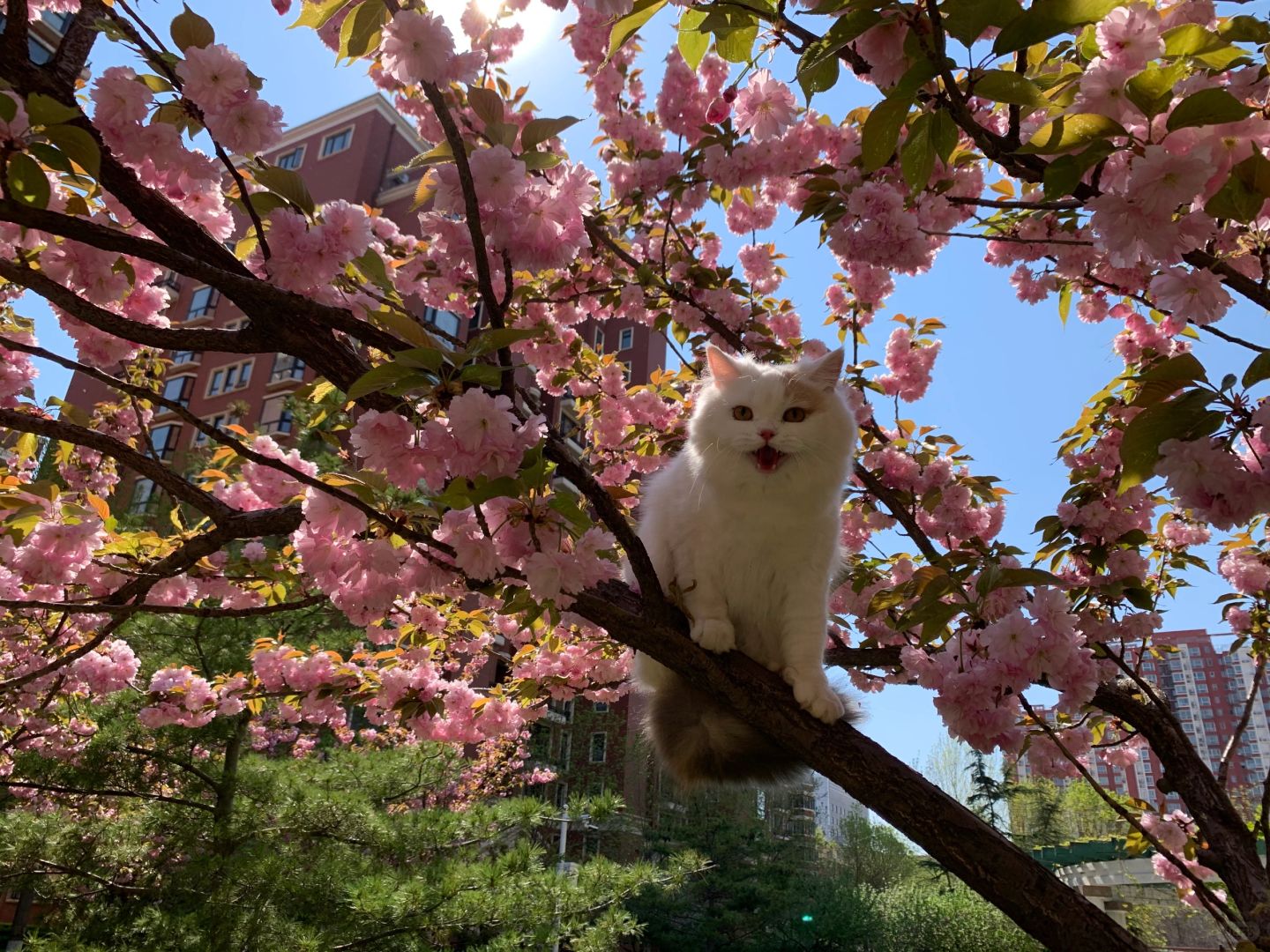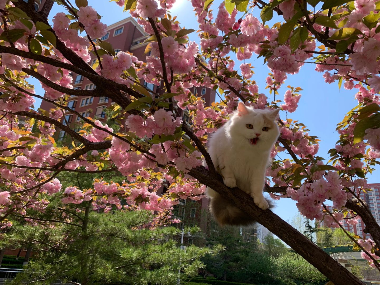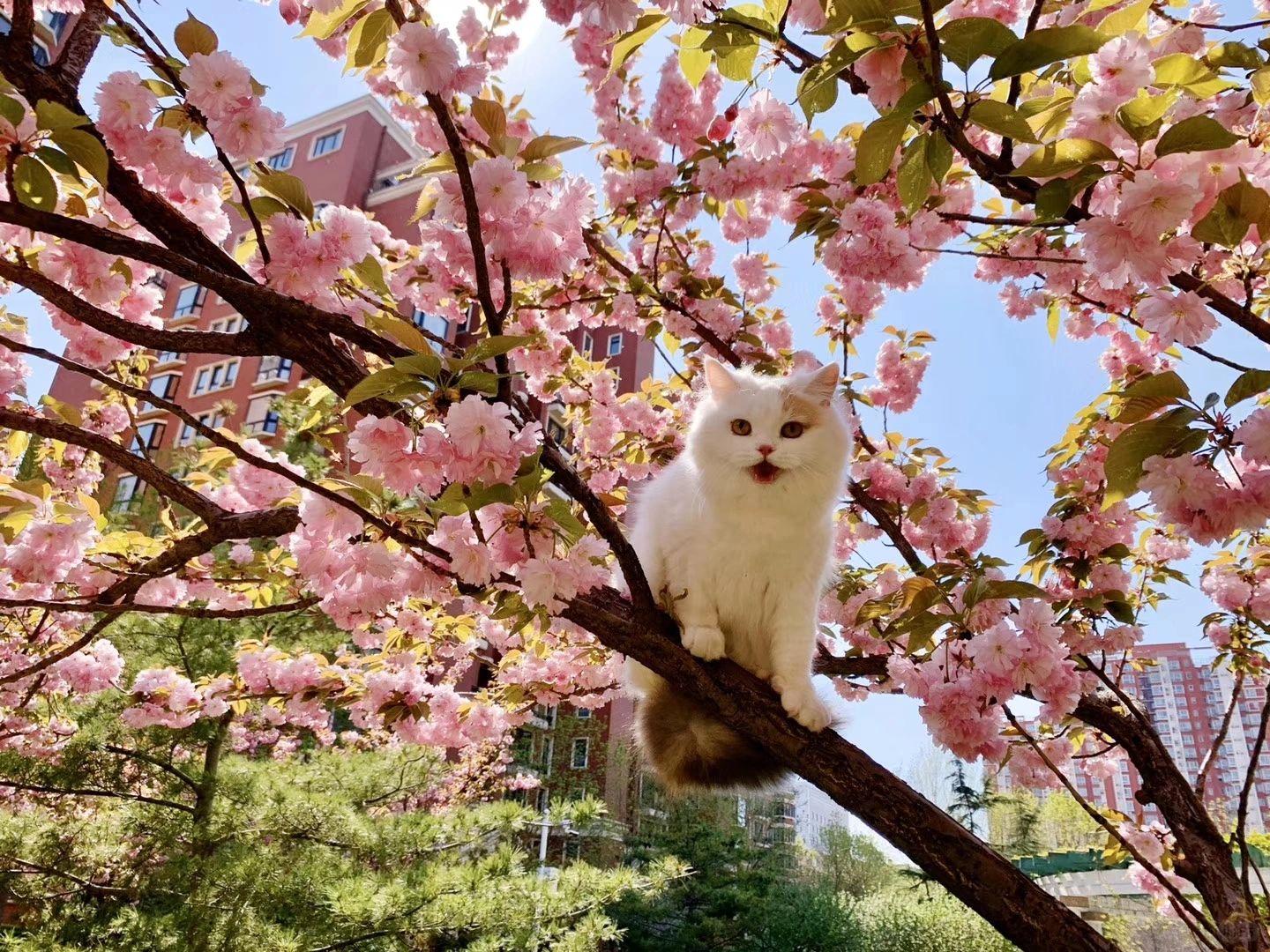 表演型猫格 猫面樱花相映红,小白就是小仙女。