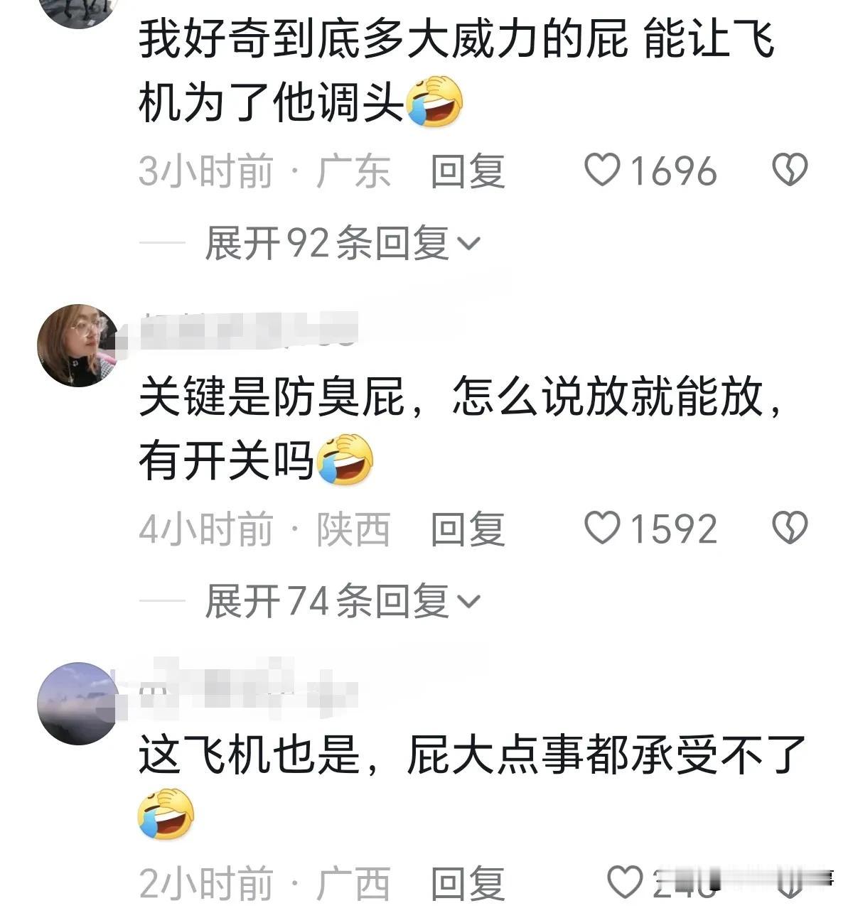 美国一男子因为在飞机内放臭屁,被赶下飞机,飞机起飞后为他调头。 开始是因为他穿着邋遢,醉酒身上有味道和飞机乘客吵架,乘客指责他粗鲁,他一生气就连续放臭屁说:“那我就粗鲁给你们看”。 最终飞机都为他调头了,我比较好奇到底是什么样的屁有这么大威力。 网友:他是怎么做到有开关说放就放的?