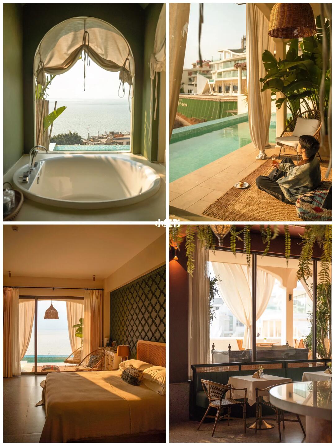 🔸酒店有着十几间异域风情的房间,各种房型,每一层走廊都是意式拱门设计,像她的名字一样犹如一座悬崖边的城堡,酒店内还有餐厅有早饭和下午茶,餐厅也是单独在一侧,室外是海景露台。我们入住的房间有洞穴泡池,打开房间超大洱海落地窗还有独属于自己的海景露台和无边泳池,在房间就能猛猛出片。公区有小花园、喷泉、长餐桌、秋千对着苍山洱海,只能说老板真的很懂女生。