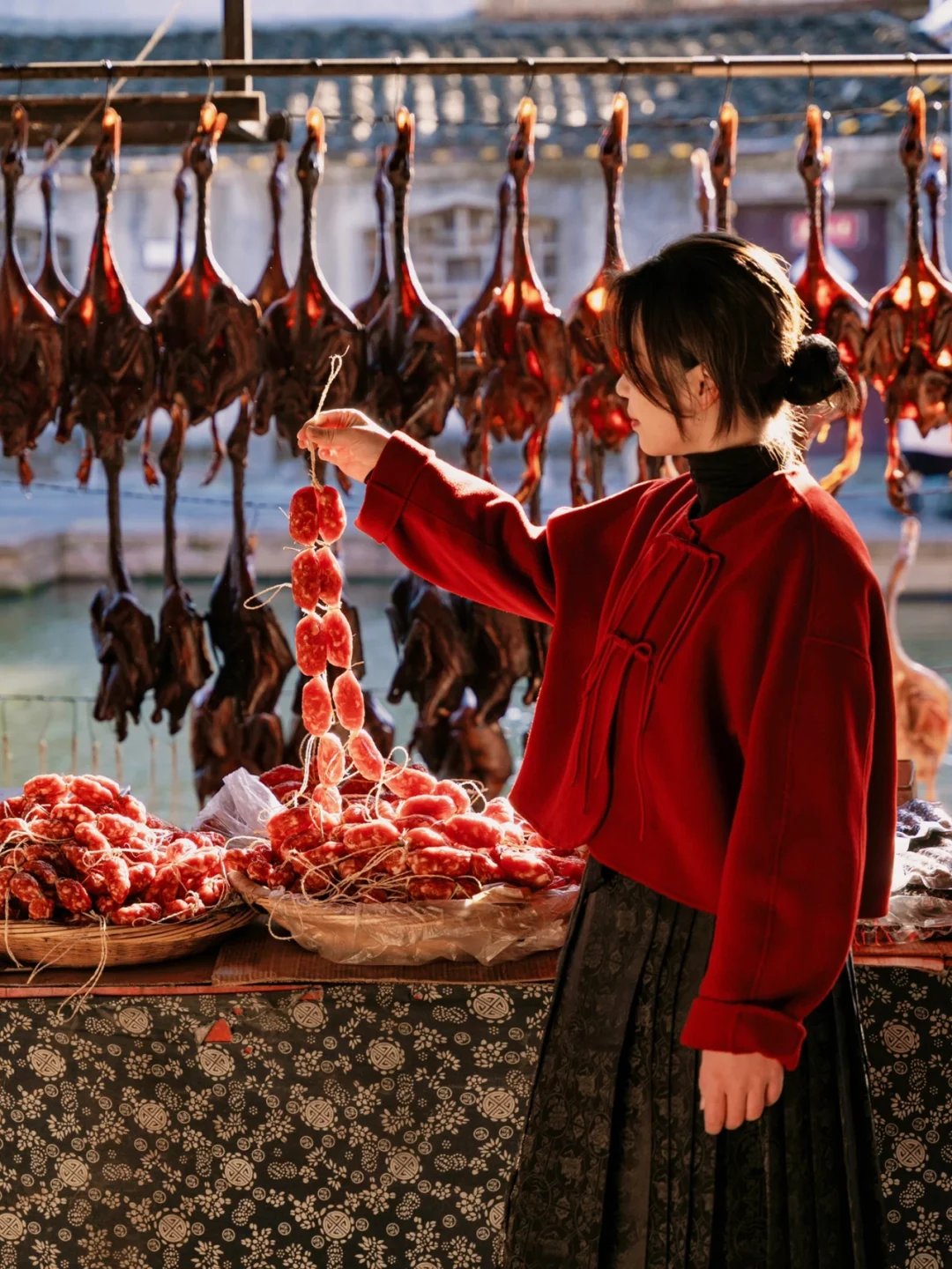 绍兴年味儿z浓郁的地方,河边挂满酱鸭腊肠熏鱼,街道两边摆满小摊而且价格实惠,比起商业化成熟的古镇,我更爱这里的人间烟火气!