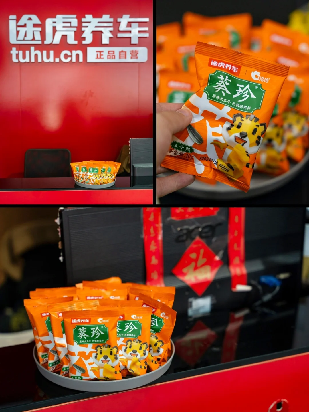 ▪️ 为了春节假期自驾更顺畅,我提前来途虎养车给车子做个清洁保养!在门店休息区等候🆓还能免费嗑瓜子!没想到是途虎养车联名洽洽瓜子的春节福利🧨年底养车还可以扫🐴(瓜子包装上)领免费补胎卡,一年内🉑️享受1次免费补胎(PS: 补胎卡=免费贴片补胎)春节前来途虎养车,自驾返乡安全有保障!