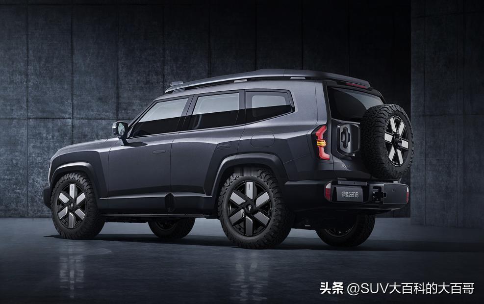 国产方盒子SUV+1,深蓝汽车G318官图发布。 尺寸4998/1985/1960mm,轴距为2880 mm,整备质量2360kg,最大载重为2800kg。 自带拖挂资质,并提供了行李架、前照灯、电动踏板、背包行囊、备胎等多种原厂拓展件。 将采用增程式的动力,并提供了双电机的四驱车型,其中前电机功率为131kW,后电机功率为185kW,系统总功率316kW。 还可通过间歇性锁死后轮,从而在后轮反转的情况下实现坦克掉头。