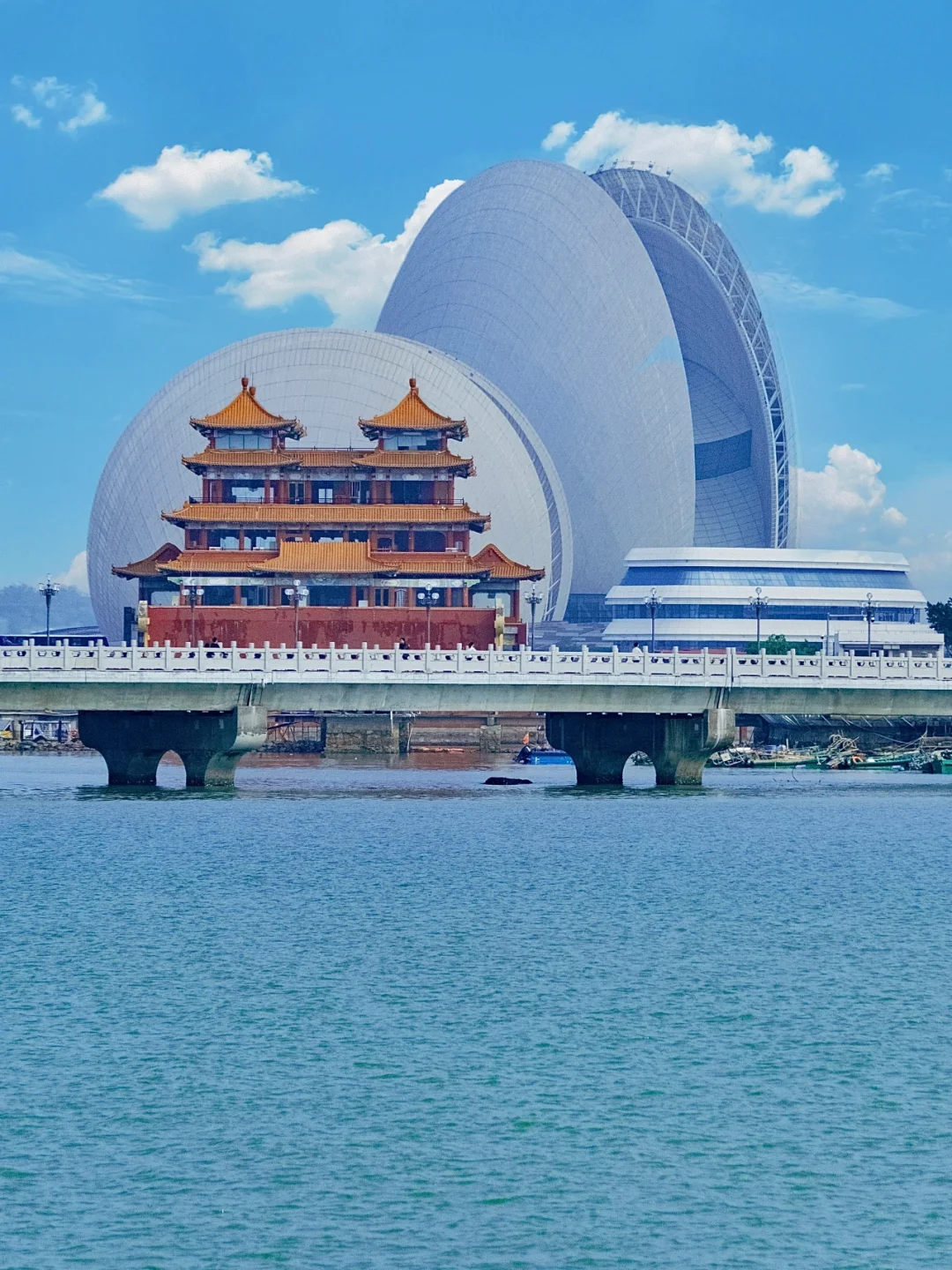 低调又浪漫的海滨城市,毗邻澳门,周边有很多岛屿。这里有全球Z大的海洋公园,国内唯一一座建在海岛上的歌剧院🉑拍到古今同框的日月贝和得月舫。