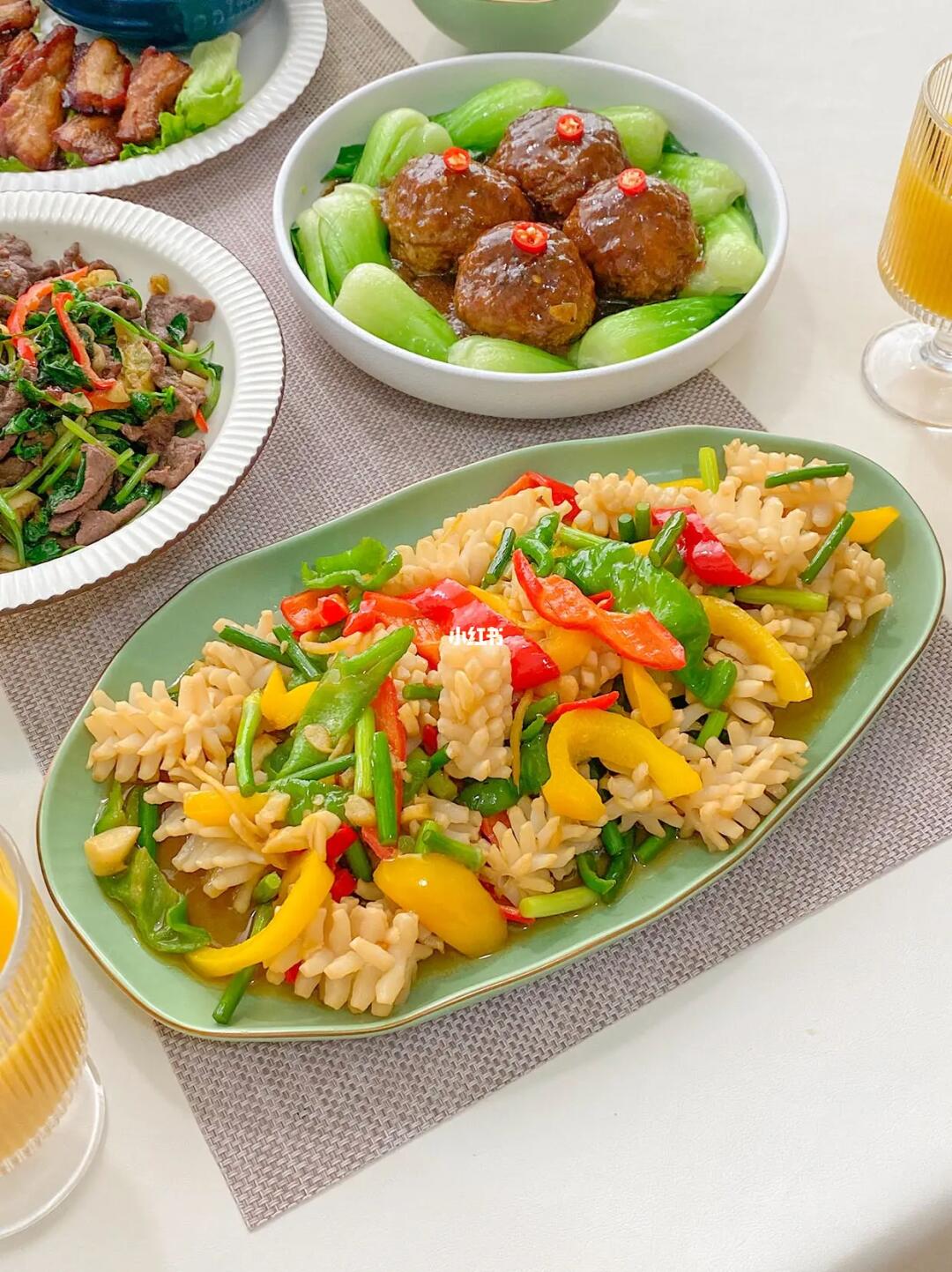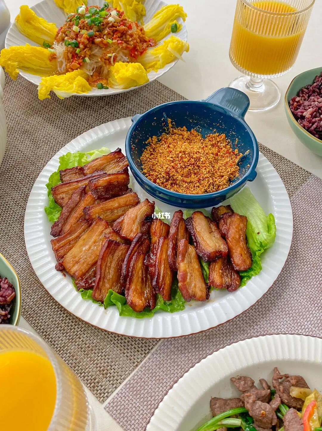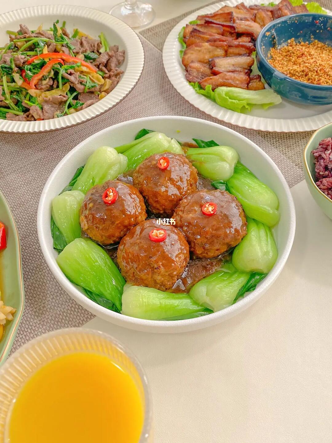🥣今日菜单: 1️⃣四喜丸子 2️⃣烤五花肉 3️⃣蒜蓉粉丝娃娃菜 4️⃣小炒牛肉 5️⃣爆炒鱿鱼花 6️⃣家常豆腐 所有菜品做法见图片 碎碎念🌈: 岁末将至,年味越来越浓🧨,年味最终的地方,总是在餐桌上🥢,家人团圆的笑容,胜过天南地北所有风景。 为了更好的准备聚会菜单,新入手了东菱佐料机🎉,玻璃绞肉碗用来搅肉泥、虾滑,今天用它搅肉泥,做了四喜丸子,3个彩色佐料小碗可以打葱姜蒜、烧烤蘸料等,高效备餐的秘密就在这了🌟,打完还可以直接上桌当味碟,实在太方便啦。套娃一体的设计,方便收纳不占地,深得我这个收纳控喜爱😍。