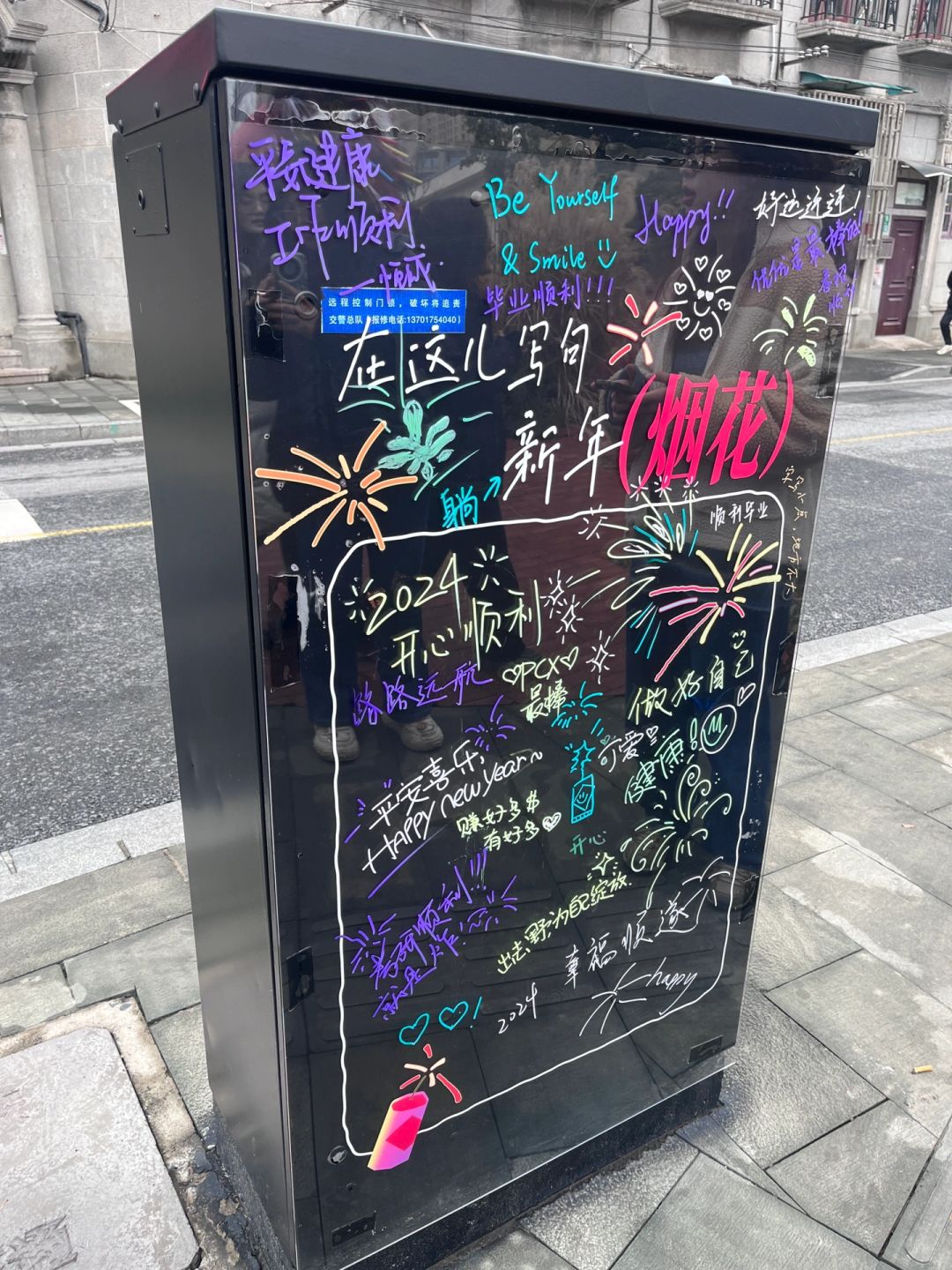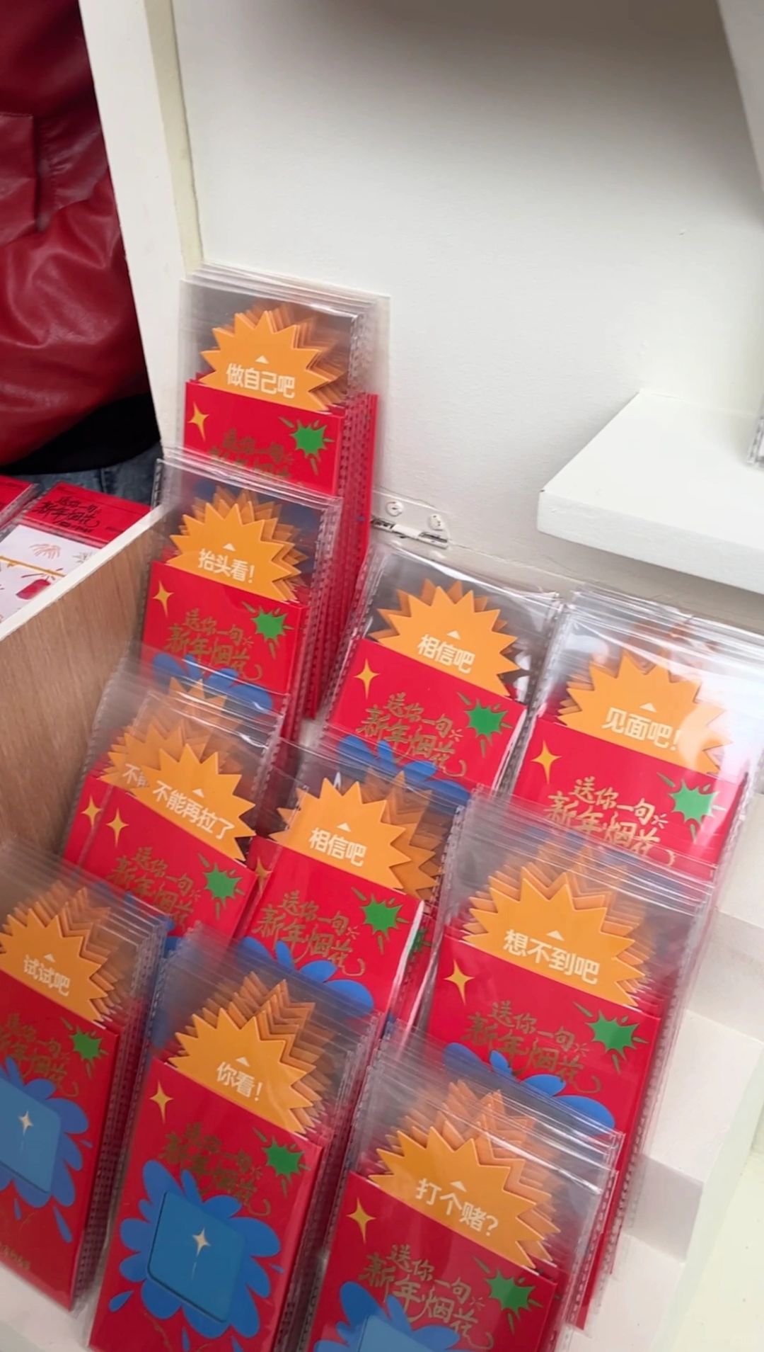 一路上还找到了好几个红色信箱,里面的卡片每一句话都不一样!真是太戳中我的心了 一些店门口还有烫发机、烟花投影、烟花扭扭棒、烟花镜子、烟花车!!!