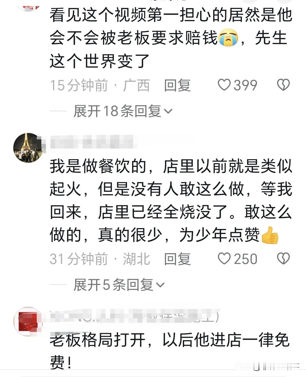 一家餐馆电表箱突然起火,被一位男子发现后,他砸碎店铺玻璃破门而入,灭火器把火灭了,没想到网友们都开始担心他了。 网友:看到视频第一个想法,就是担心店主让他赔玻璃门的钱。