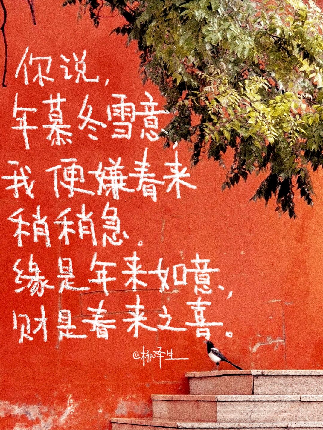 春节诗合集 | 我们给未来介绍起从前 1. 过年是外婆炸的酥肉掉进了春天, 我弯腰却捡起了整个童年。 此时人间,都在给未来介绍着从前... 2. 过春节比春节本身温馨。 年是一封写给过去的信, 寄出远比收到更有意义。 3. 你说, 年慕冬雪意, 我便嫌春来稍稍急。 缘是年来如意, 财是春来之喜。 4. 年是生活结的茧, 借团圆化开成新的明天。 5. 年是一张辞呈, 冬寒交递,尽享春程。
