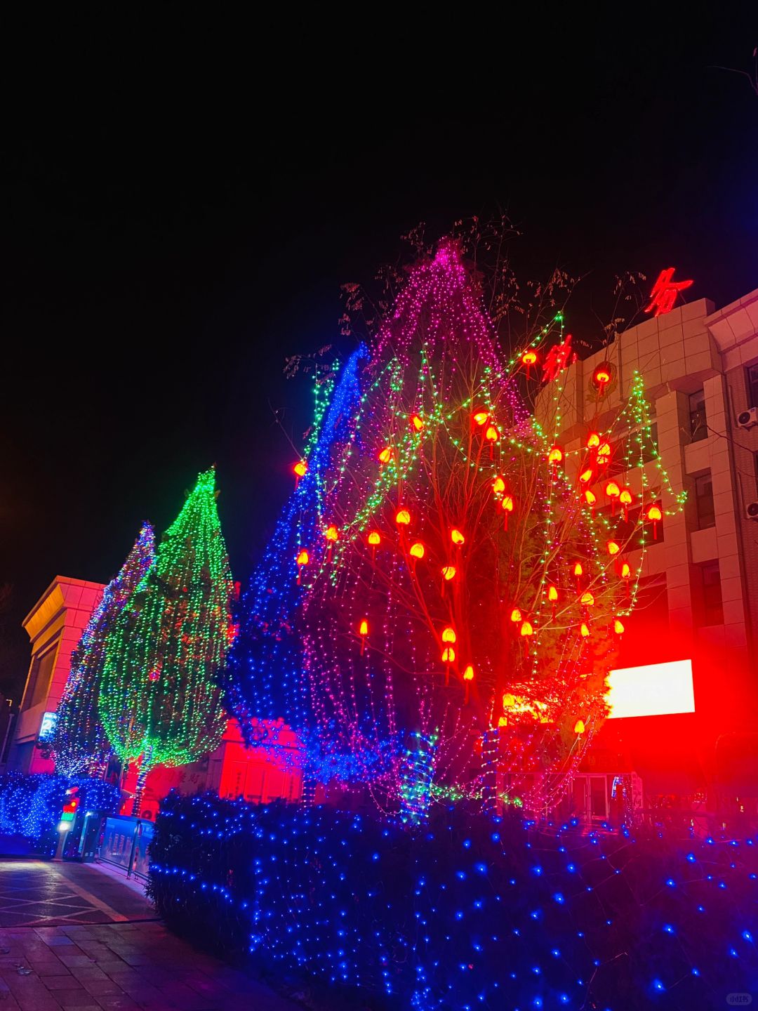 赛博朋克山西彩灯 没有一棵树可以在山西暗着过年 每条路上彩灯都不带重复的,一个比一个卷 这过年氛围🉑️太浓郁了 山西阳台可太酷炫了,家家户户小灯笼可太适合蹦迪了
