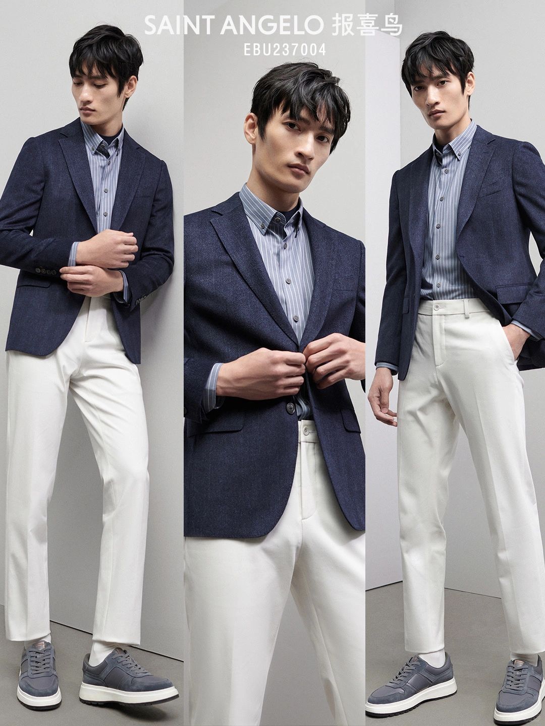 👉31-38岁 所谓30而立 家庭与事业齐头并进、欣欣向荣 西服着装也更注重品质 金羊毛系列西服自带高级质感 衬托成熟稳重的魅力