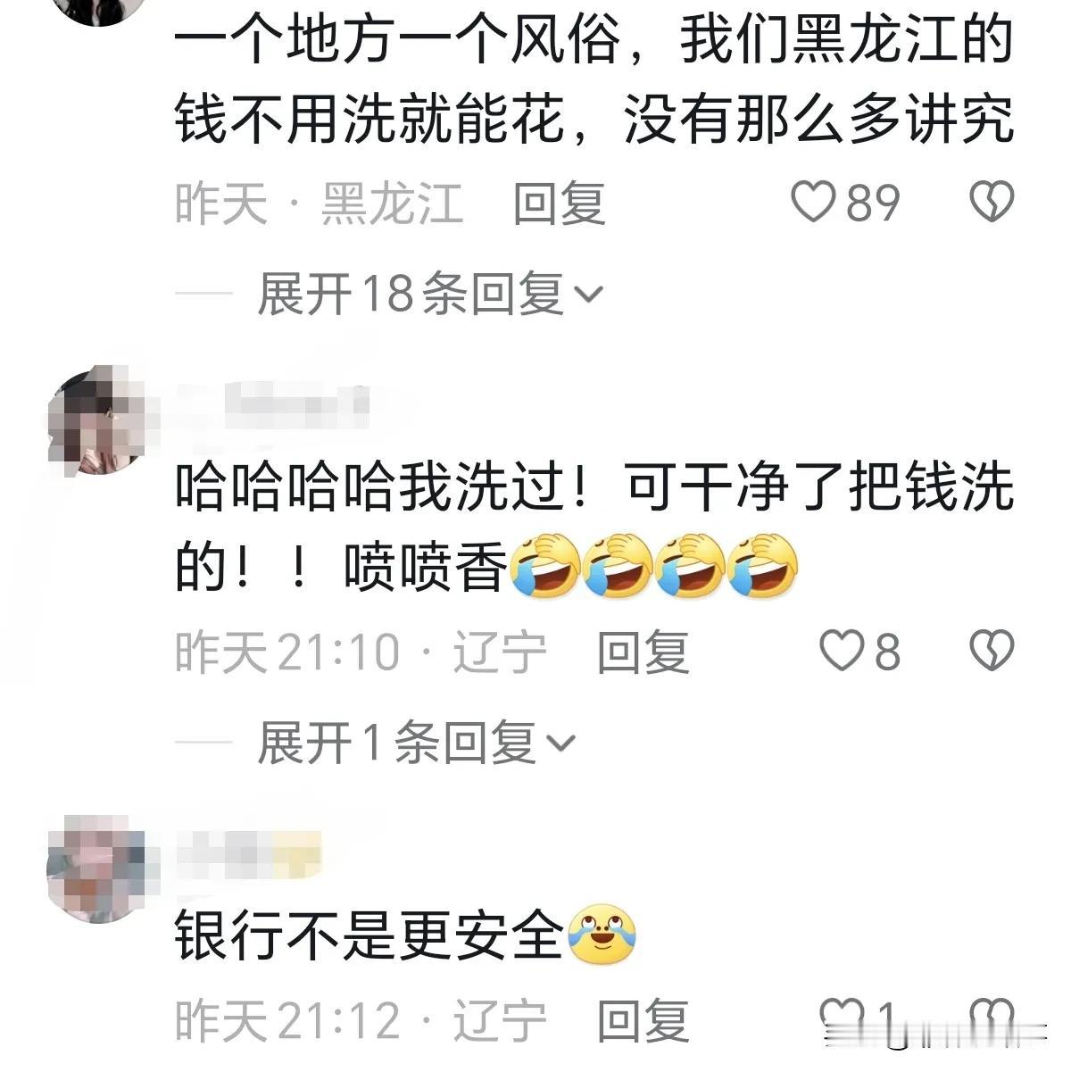 近日辽宁,大过年的,一对情侣觉得把钱放在洗衣机里比较安全,一回头就忘了,就把钱都给洗了,咱就说还是钱的质量比较好,这要是洗碎了掉色了可咋整?这种情况银行会给换新么? 网友:一个地方一个风俗,我们黑龙江的钱不用洗就能花,没有那么多讲究。 网友:哈哈哈哈我洗过!可干净了把钱洗的!!喷喷香。 网友:银行不是更安全。