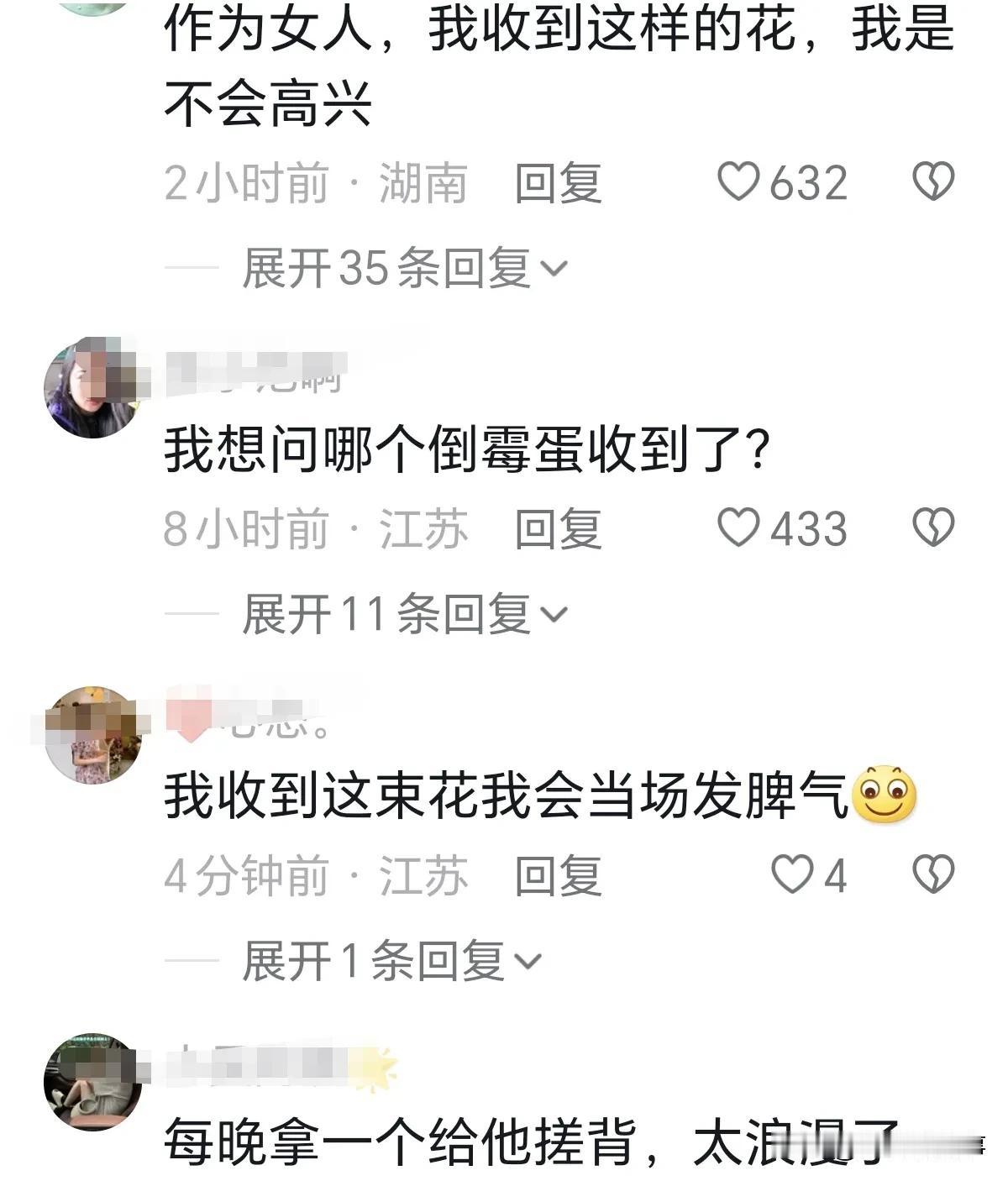 情人节送女友钢丝球花?这男的是疯了吧?他是想分手不知道咋说吧!女人收到这种礼物都会觉得晦气吧!会有一种男友让自己干一辈子活的感觉。 网友:作为女人,我收到这样的花,我是不会高兴。 网友:我想问哪个倒霉蛋收到了? 网友:我收到这束花我会当场发脾气。 网友:每晚拿一个给他搓背,太浪漫了。