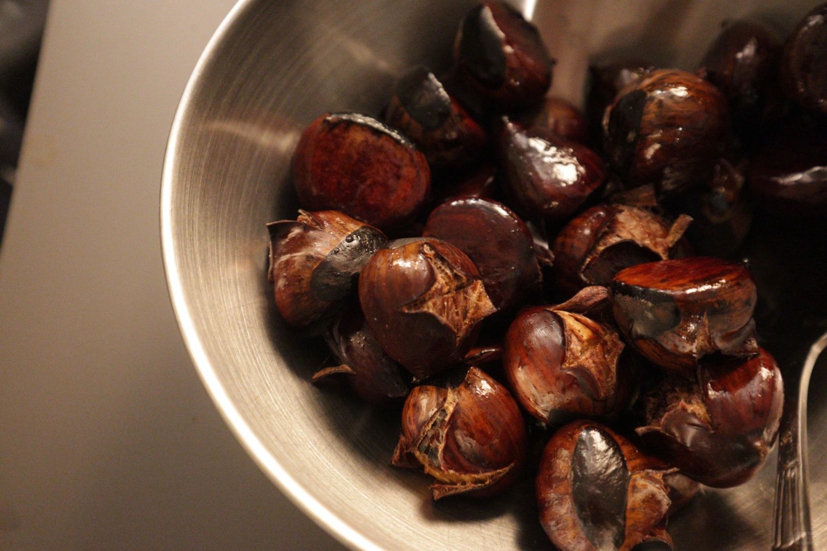 ✨糖炒栗子🌰 缺德舅的栗子食谱 1️⃣栗子用清水泡一下,用刀在鼓起来的一面切个十字. 用糖和水1:1浸泡10min 2️⃣将栗子糖水下锅煮5-8分钟然后捞出 3️⃣擦千栗子表面水分,表面喷一层油,再刷一层蜂蜜水🍯 4️⃣放入空气炸锅里 350F烤10分钟,然后翻面再刷一层蜂蜜水,继续烤10 分钟左右 ✨开心果拿铁☕️ 星巴克刚出的款,开心果味还蛮浓的但有点点甜,可冲 @Joy 和美女的coffee chat抽象记录