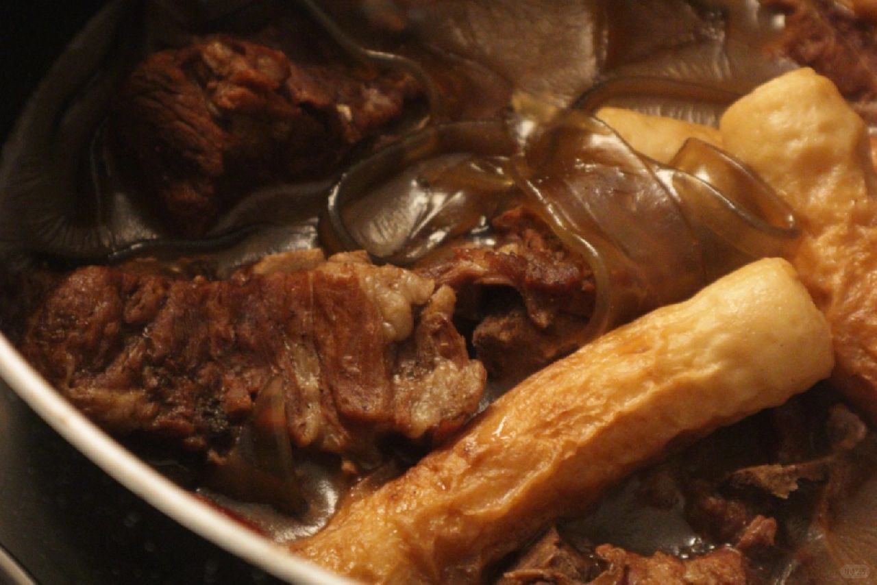 ✨晚饭🥣 排骨炖粉条🥩+炒青菜🥬 用红烧肉和炖牛肉的调料包炖了2h的排骨真的很好吃,喜欢和朋友一起吃晚饭的治愈瞬间
