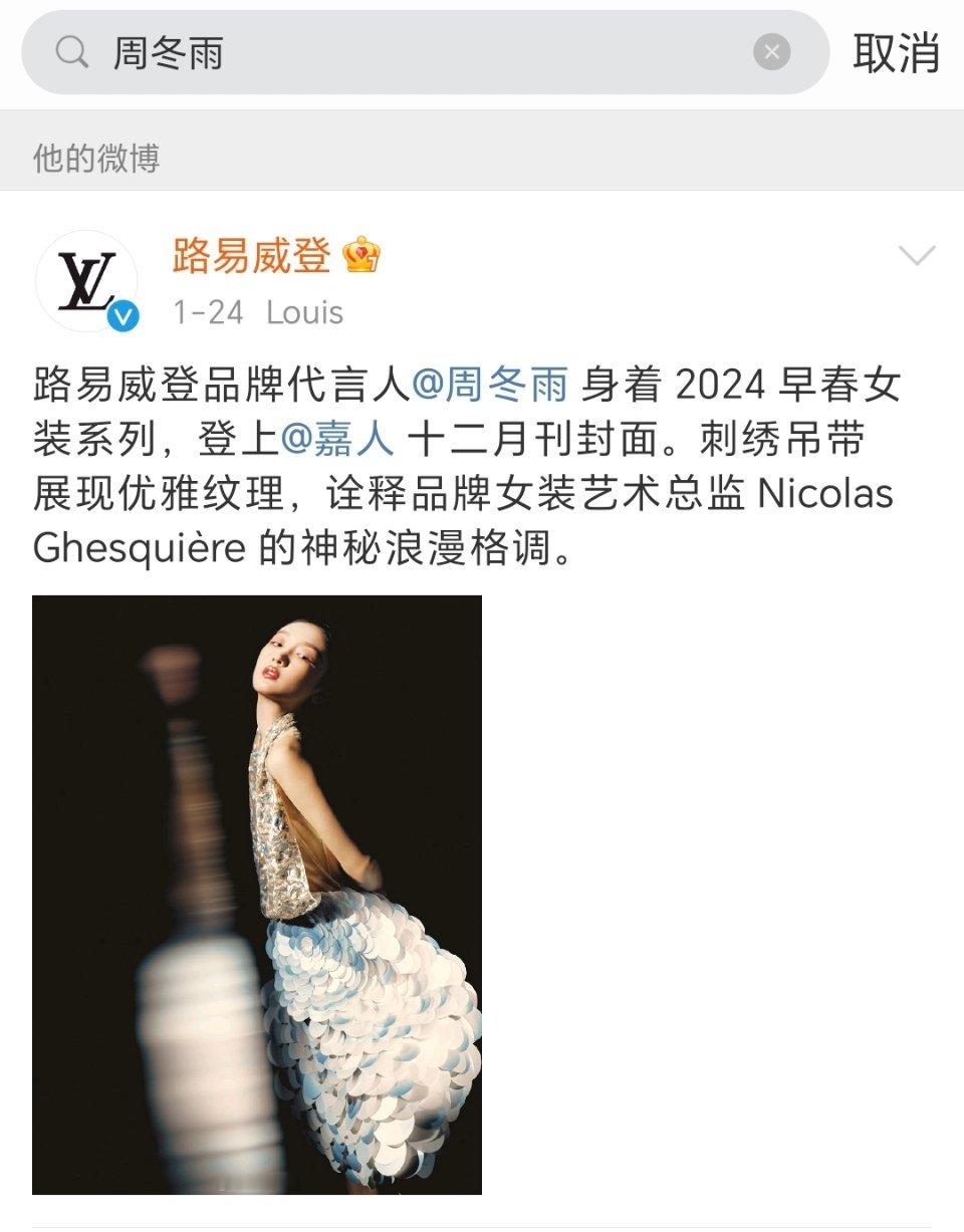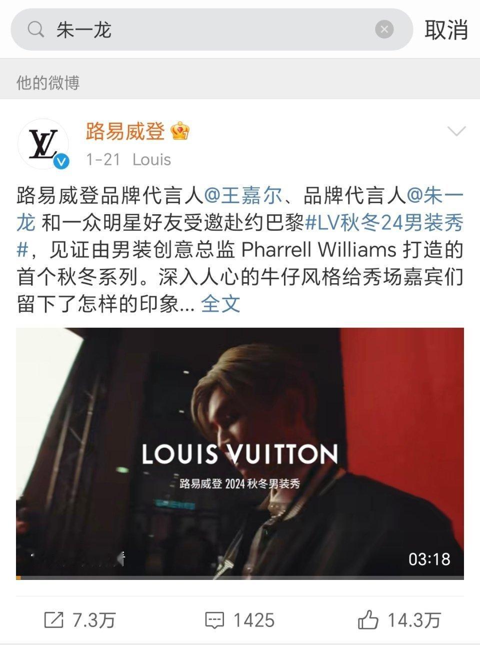 搜了下同是lv品牌代言人的朱一龙,王嘉尔,周冬雨,都还在