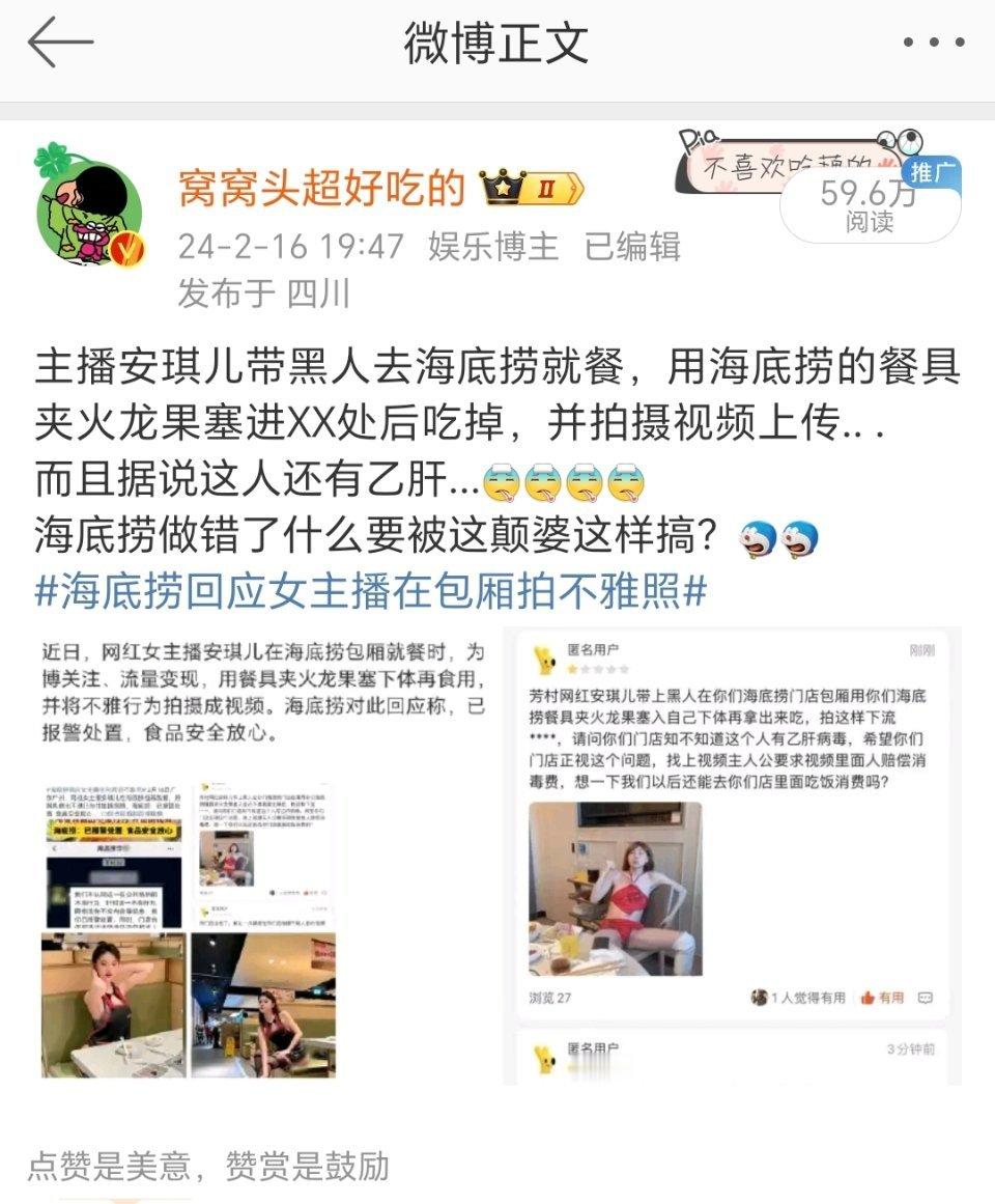 安琪儿 海底捞 后续来了,喜提蓝底白字。