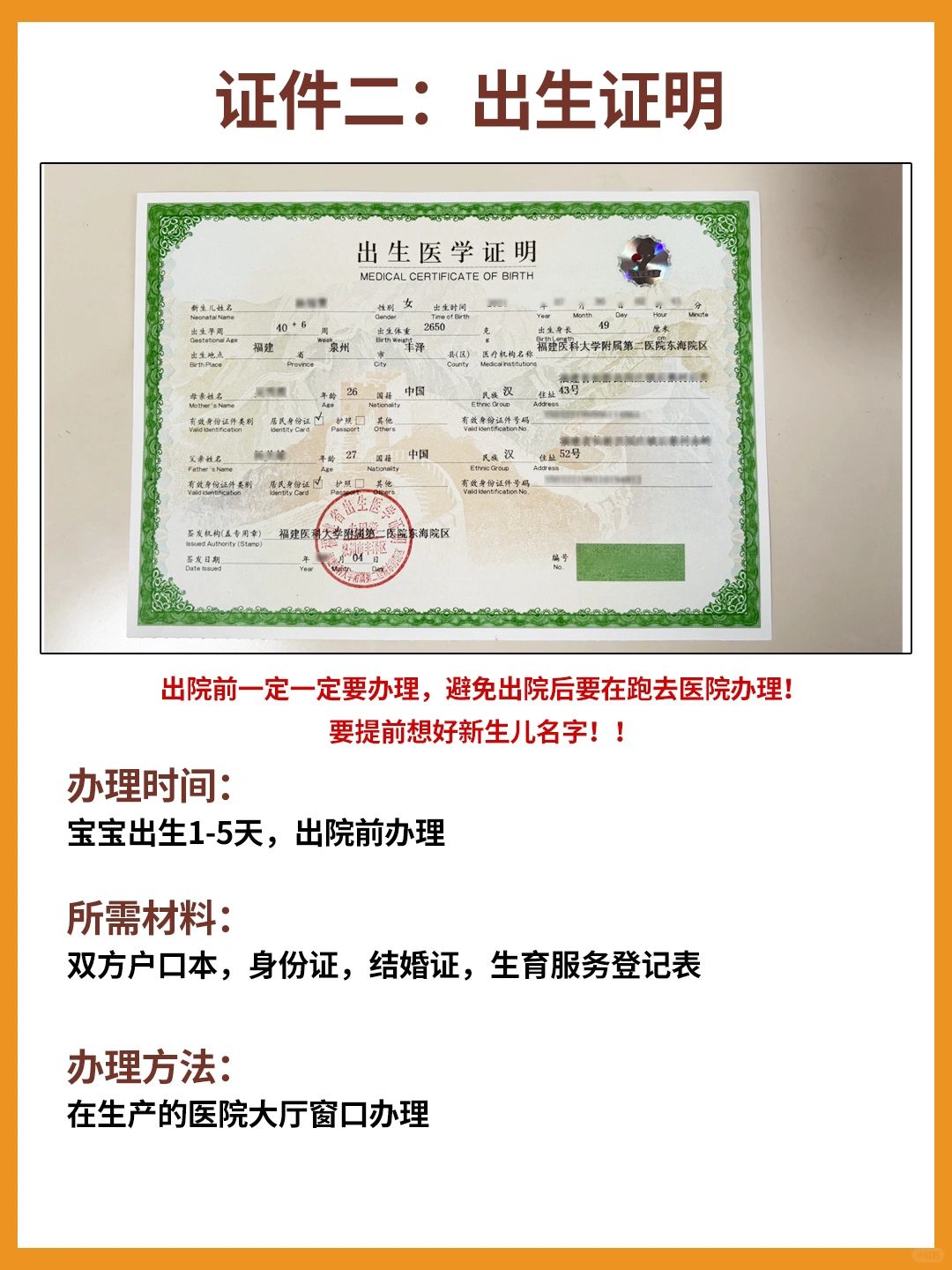 🔸办理时间:宝宝出生1-5天,出院前办理