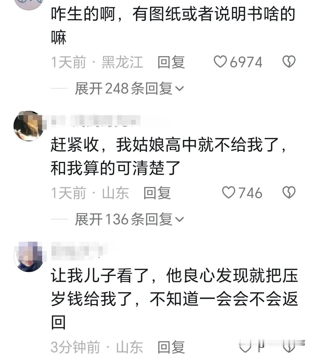 告诉我怎么才能生出这么好的女儿。 近日江苏女孩把过年收到的红包,都拿出来给妈妈,爸爸跟她要,她不给,她说:“你又没生我,妈妈生我很不容易的,我在她肚子里她很难受的,她对妈妈说不要不好意思拿红包,这是你生我照顾我的奖励,生病上学这些钱其实都不够”,孩子强烈要求妈妈收下红包。 网友:赶紧收,我姑娘高中就不给我了,和我算的可清了。