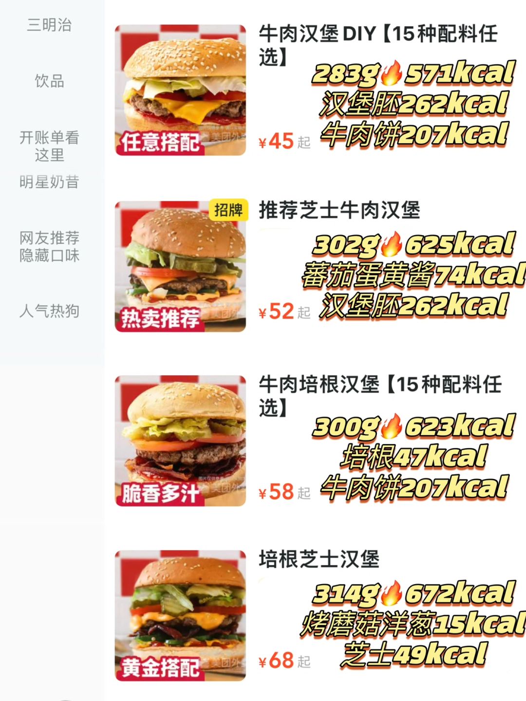 一个好吃的汉堡,真的藏不住啊,就是油了一点,哈哈哈哈哈,不过不影响他好吃!反正搭配超多种,配料我也是取了各种配料的zui大值了,酱料Alltheway三酱也就78大卡至于大家平时怎么Diy就只能看zui大值了!