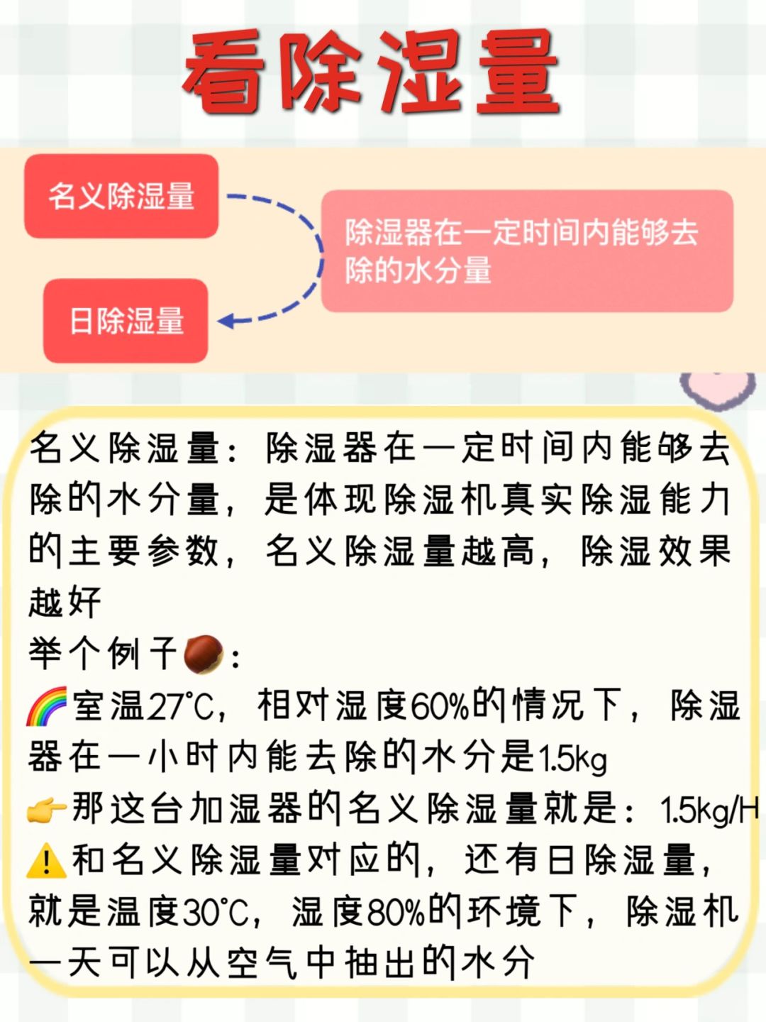 🌈日除湿量:就是一定温度和湿度下,除湿机一天可以从空气中抽出的水分