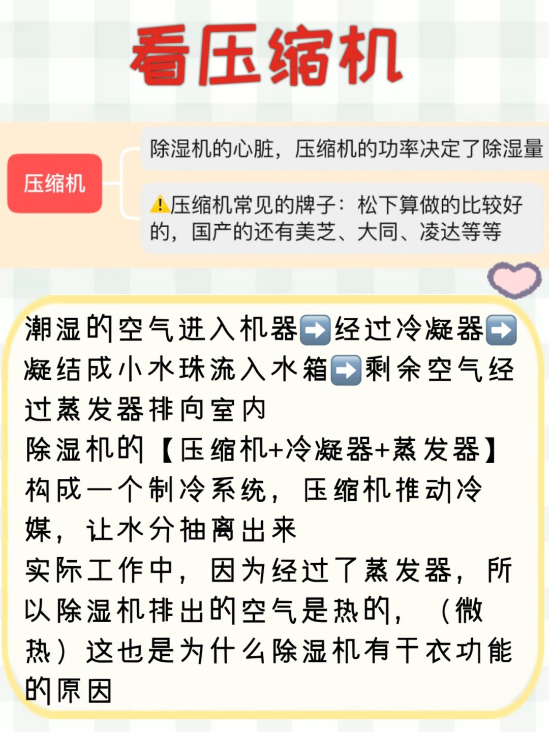 ⚠️压缩机是除湿机的心脏,压缩机的功率决定了除湿量