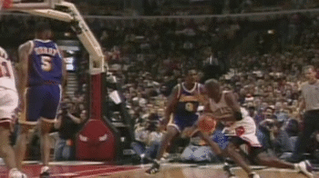 乔丹职业生涯最佳杂耍进球,右手换左手拉杆上篮