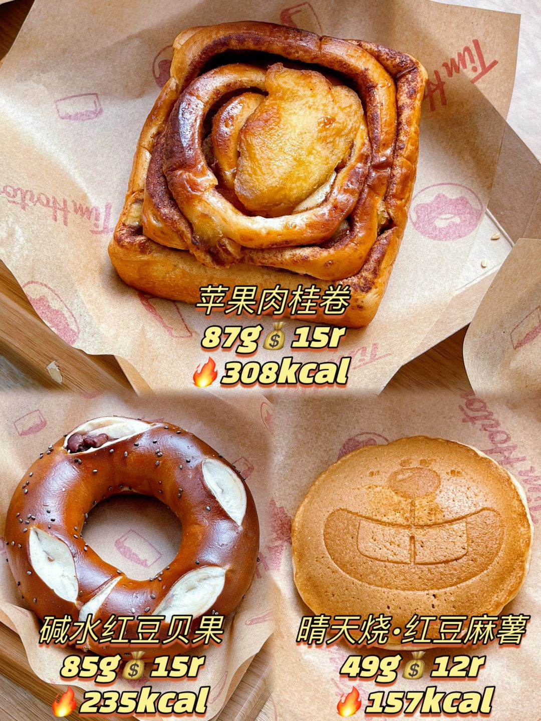 Tims新品热量‼️6款新品🫘碱水红豆🥯肉桂卷