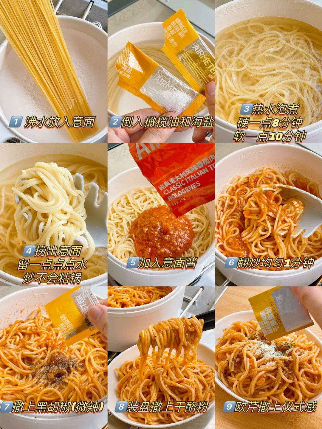 1️⃣经典番茄肉酱烩意大利面,心目中的TOP了,酸甜度到肉酱比例,真的可以搭配万物完成一顿。