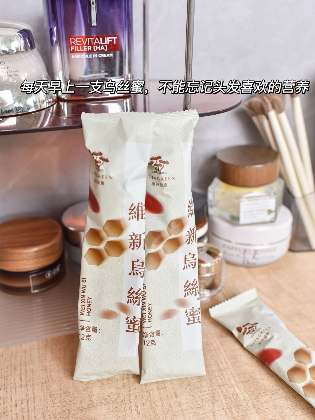 2、食补喝的维特健灵 乌丝蜜,它里面配料干干净净,只有黑芝麻、桑葚、枸杞这些对头发好的黑色食物,由内而外的给头发营养,每天温水冲泡一杯就行。现在我的头发状态我很满意,这也是我一直坚持下去的动力!