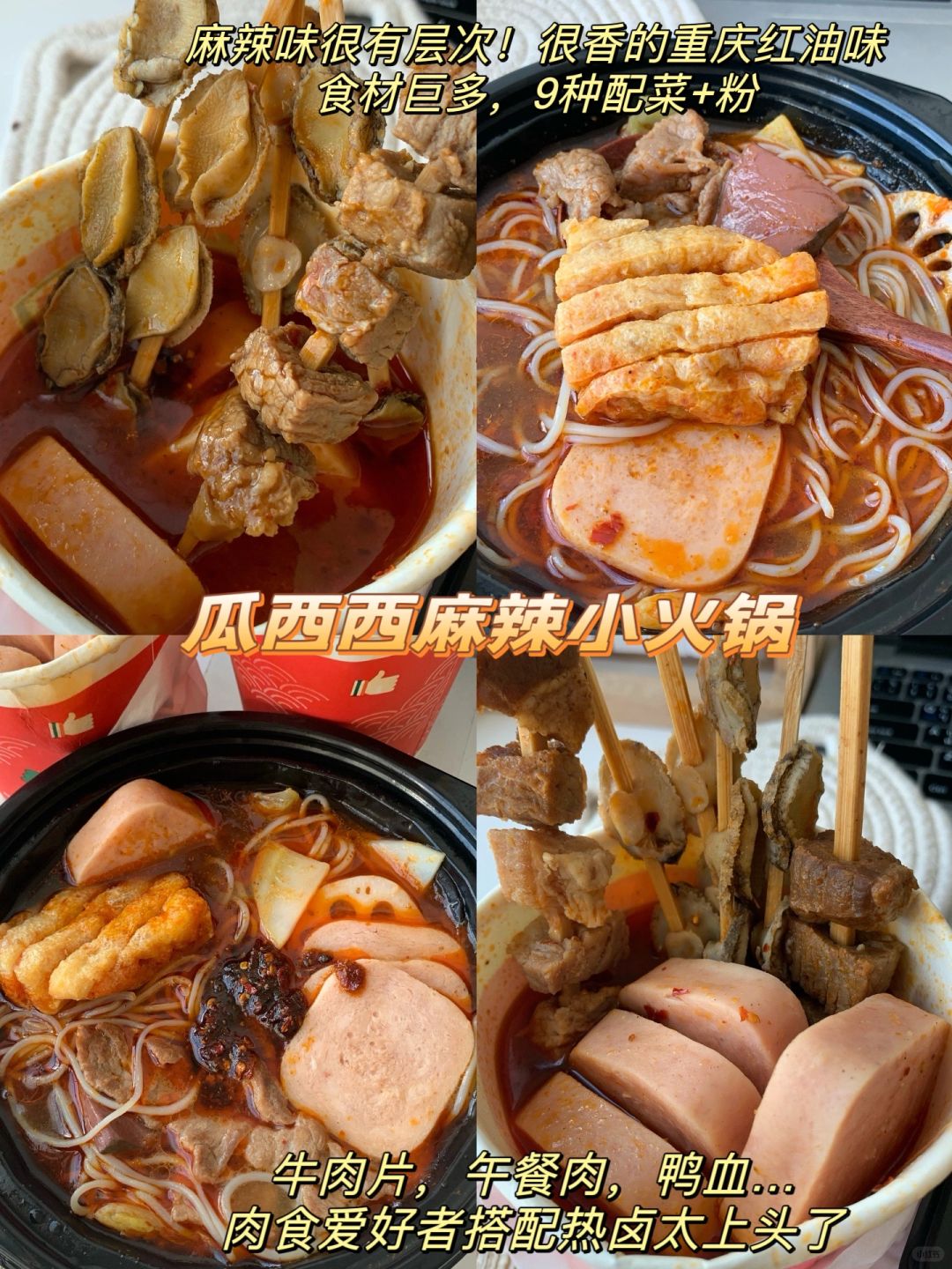 还可以搭配瓜西西独家麻辣锅底!在家就能吃,微波炉加热2、3分钟即可,懒人必备!