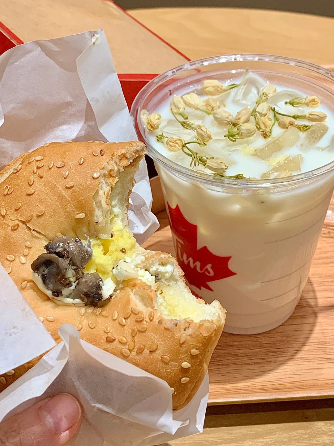 新出的减脂奶油芝士一份39大卡,个人觉得和普通芝士口感没差热量还少一半。加上微笑贝果,t门减脂期坠爱午餐之一!黑松露菌菇贝果也低卡,加热喷喷香!!