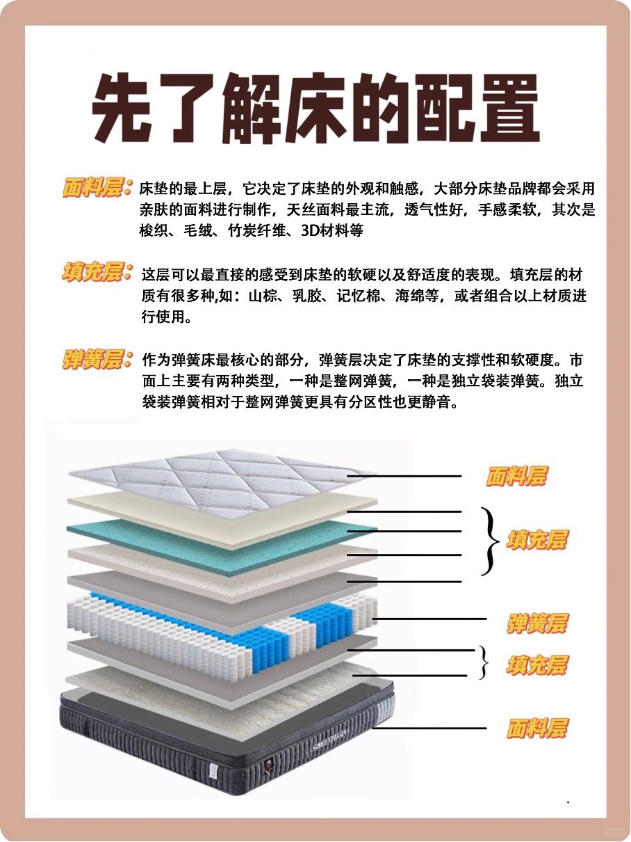 在研究家居的这几年让我深入的了解到了床垫的制造过程和材质成💰本。一般情况下,床垫内部是由面料层+填充层+支撑层组成,大部分人只能感受到床垫的前11cm,所以选择床垫的时候要特别注重填充层的配置。
