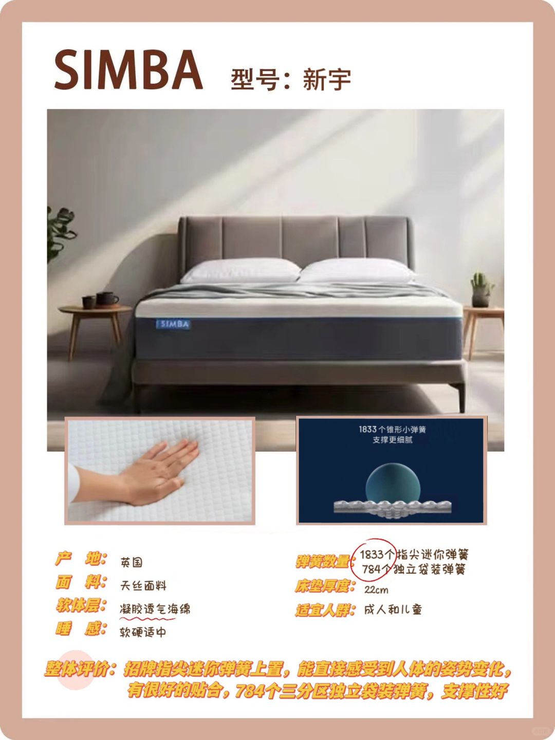 英国的专业床垫品牌,表面天丝面料,1833个指尖迷你弹簧在上置,能直接感受到人体的姿势变化,有很好的贴合,784个三分区独⽴袋装弹簧,支撑性好,床垫厚度22cm,适合成人和儿童。