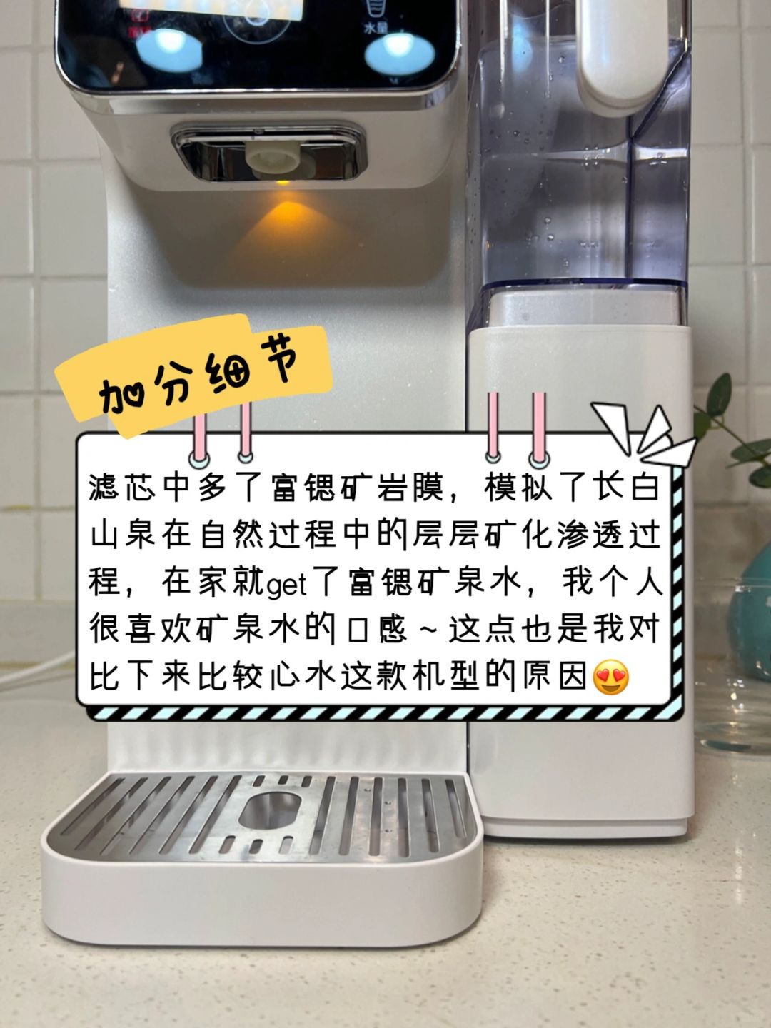 滤芯中多了富锶矿岩膜,模拟了长白山泉在自然过程中的层层矿化渗透过程,在家就get了富锶矿泉水,我个人很喜欢矿泉水的口感~这点也是我对比下来比较心水这款机型的原因😍