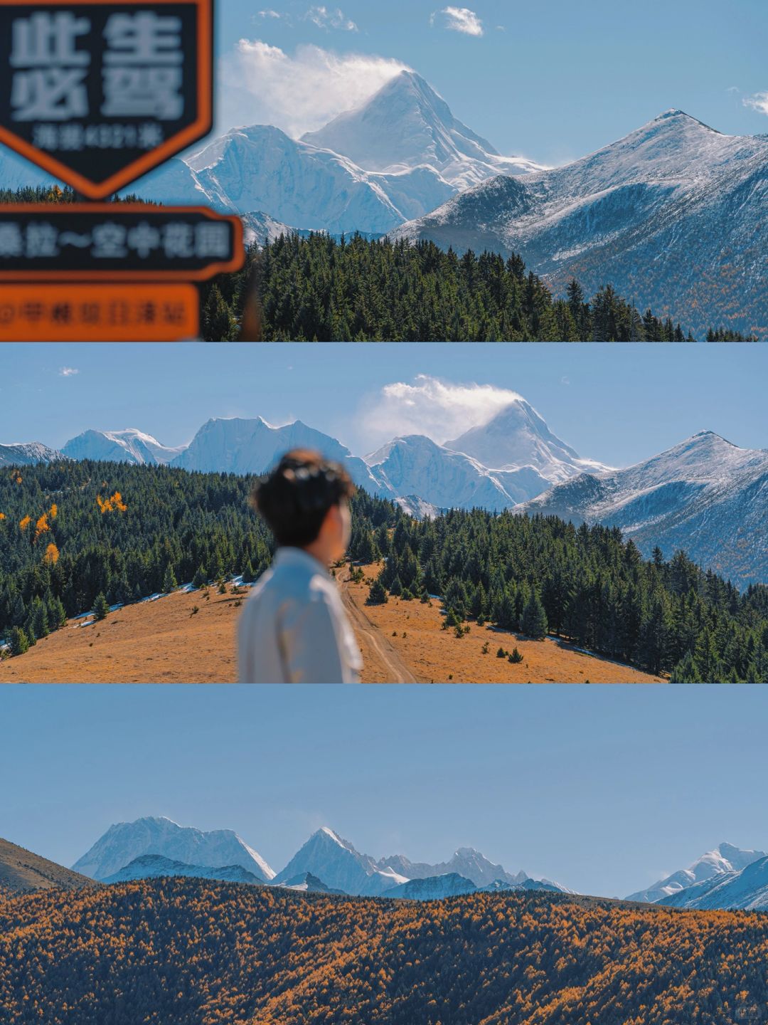 ☑️车子可以开到山顶,如果想更近距离看贡嘎需要徒步穿过树林,个人觉得山顶平台就足够好看~