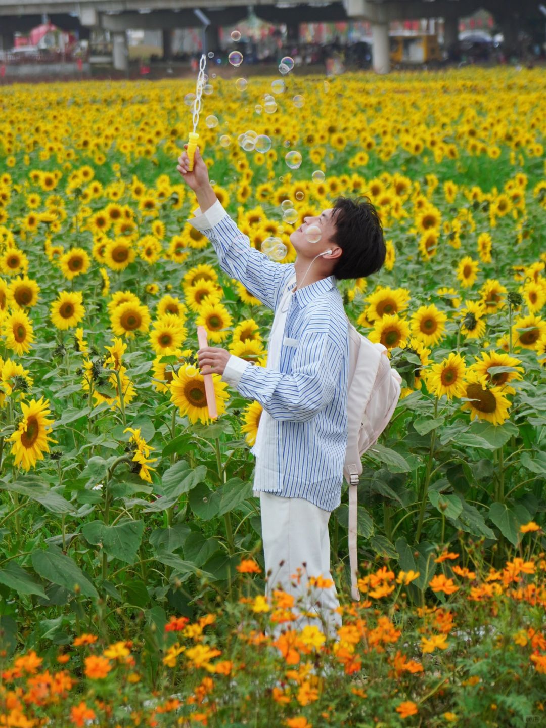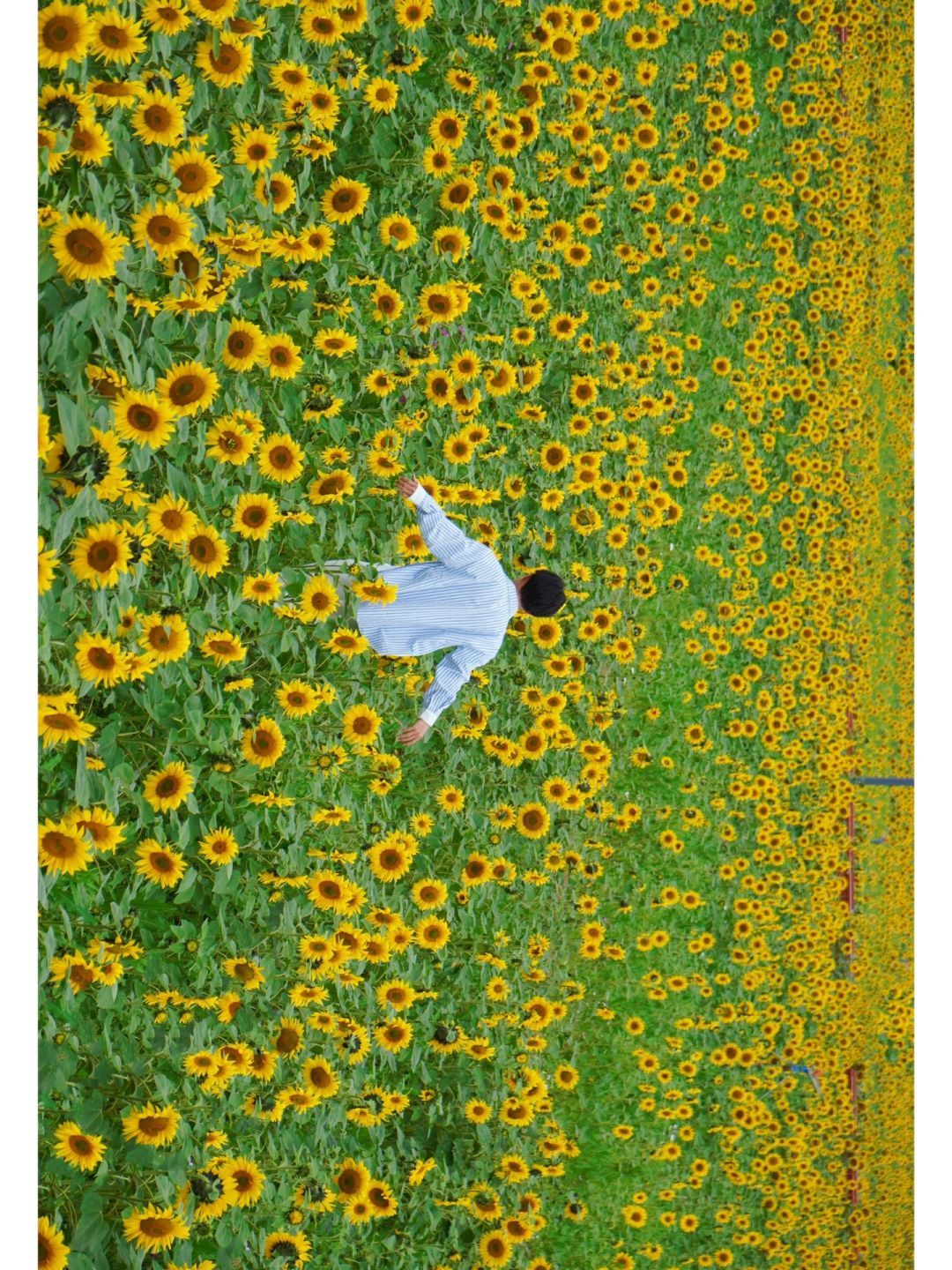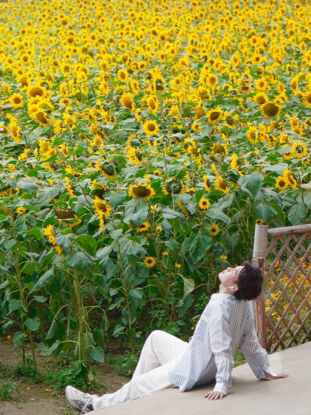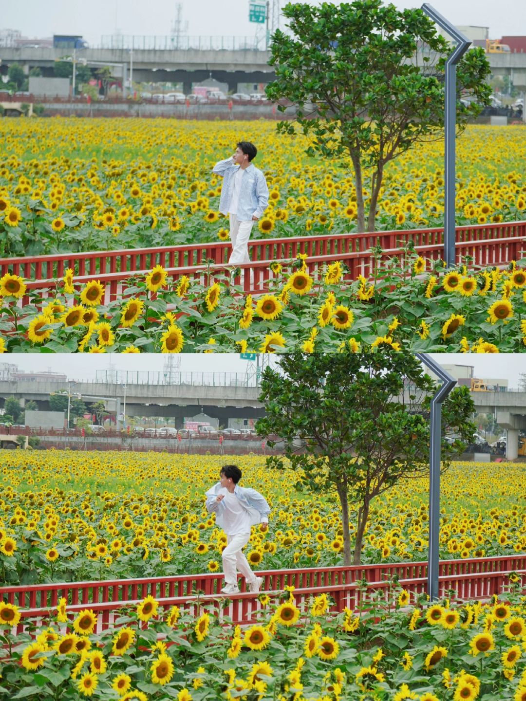 2️⃣抵达后一直往右上角的观景台拍,打开手机3倍变焦,人在花丛中走,可以得到图一图二一望无际的花海效果。