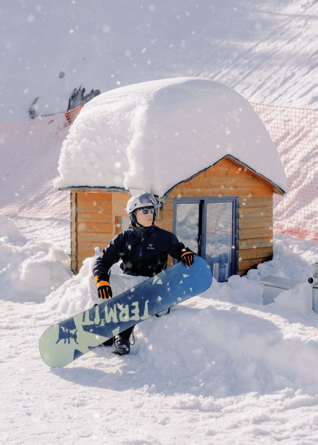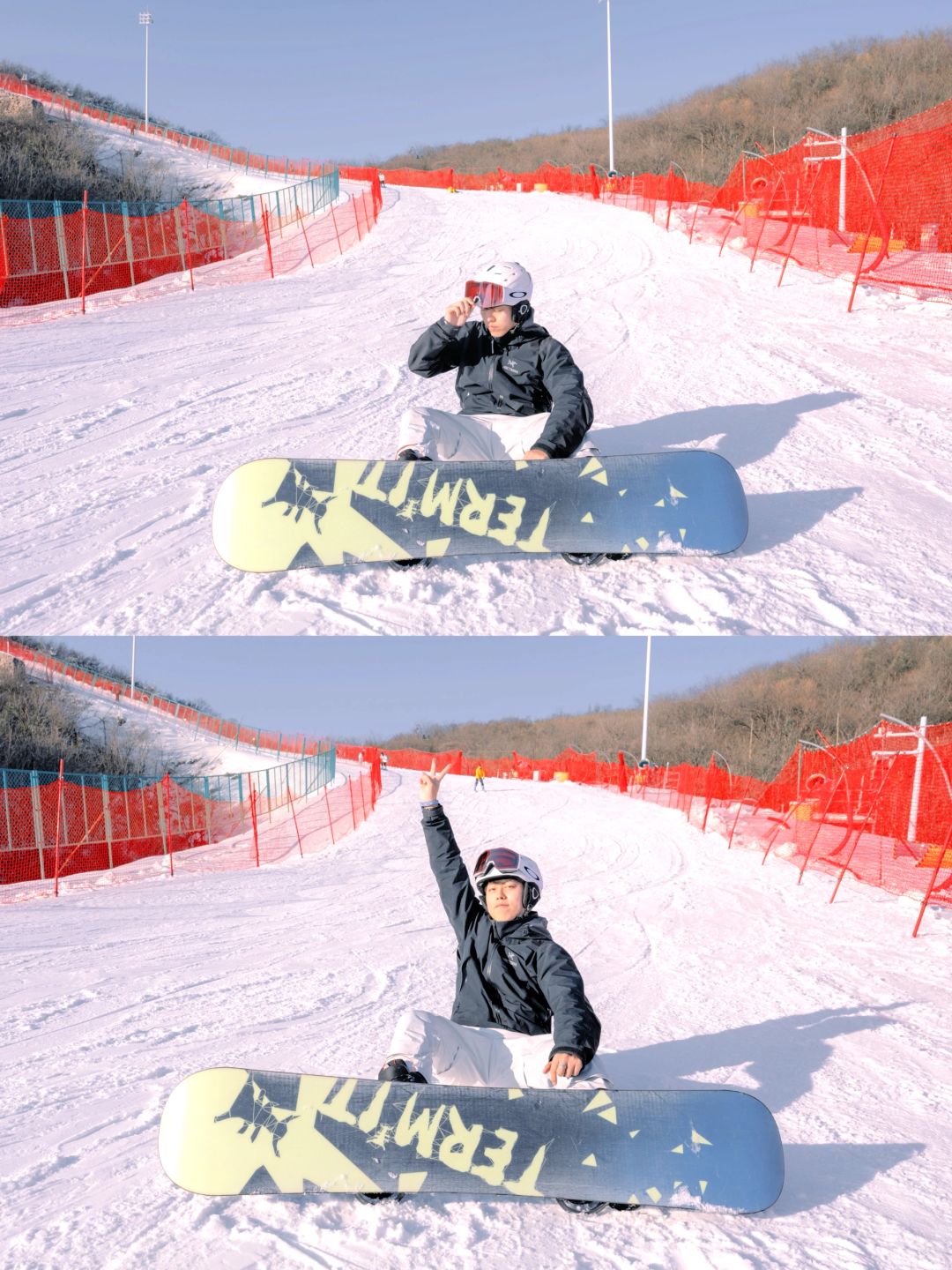 🏂🏻拿着雪板放在身前