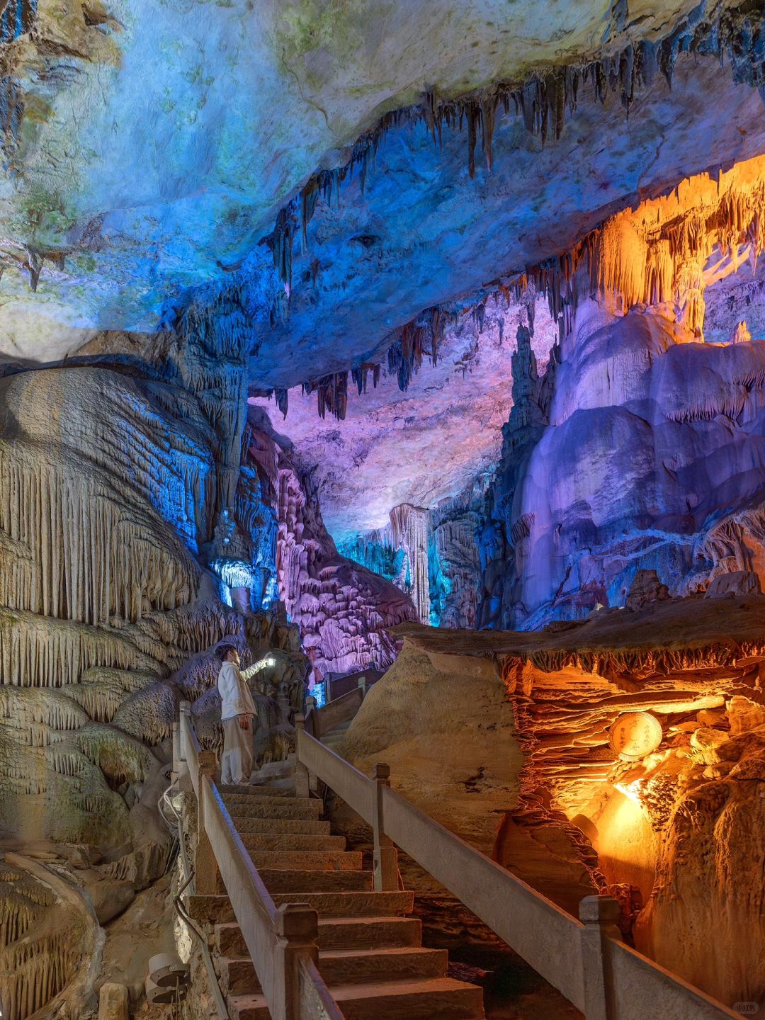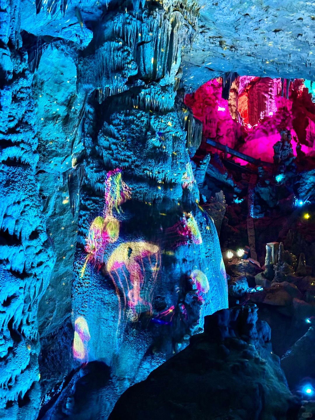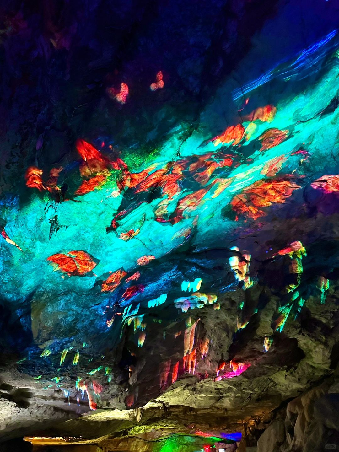 🌙洞内五彩缤纷的钟乳石在灯光的点缀下呈现出千姿百态