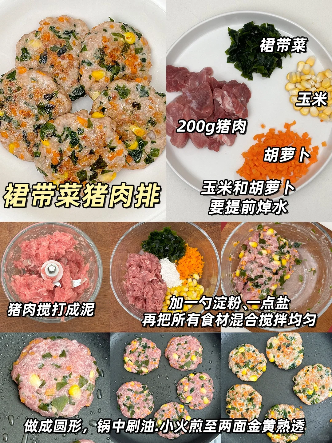 ✅裙带菜猪肉饼(猪肉、裙带菜、玉米、胡萝卜)