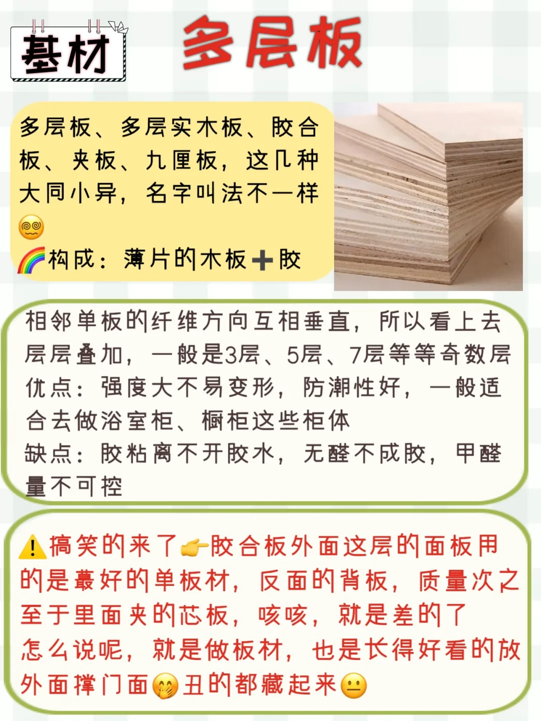 🧐那胶合板、木工板、免漆板、三合板、木芯板、多层实木板、生态实木板、实木颗粒板、夹板、奥松板、拼接板......是不是直接给你打懵😑