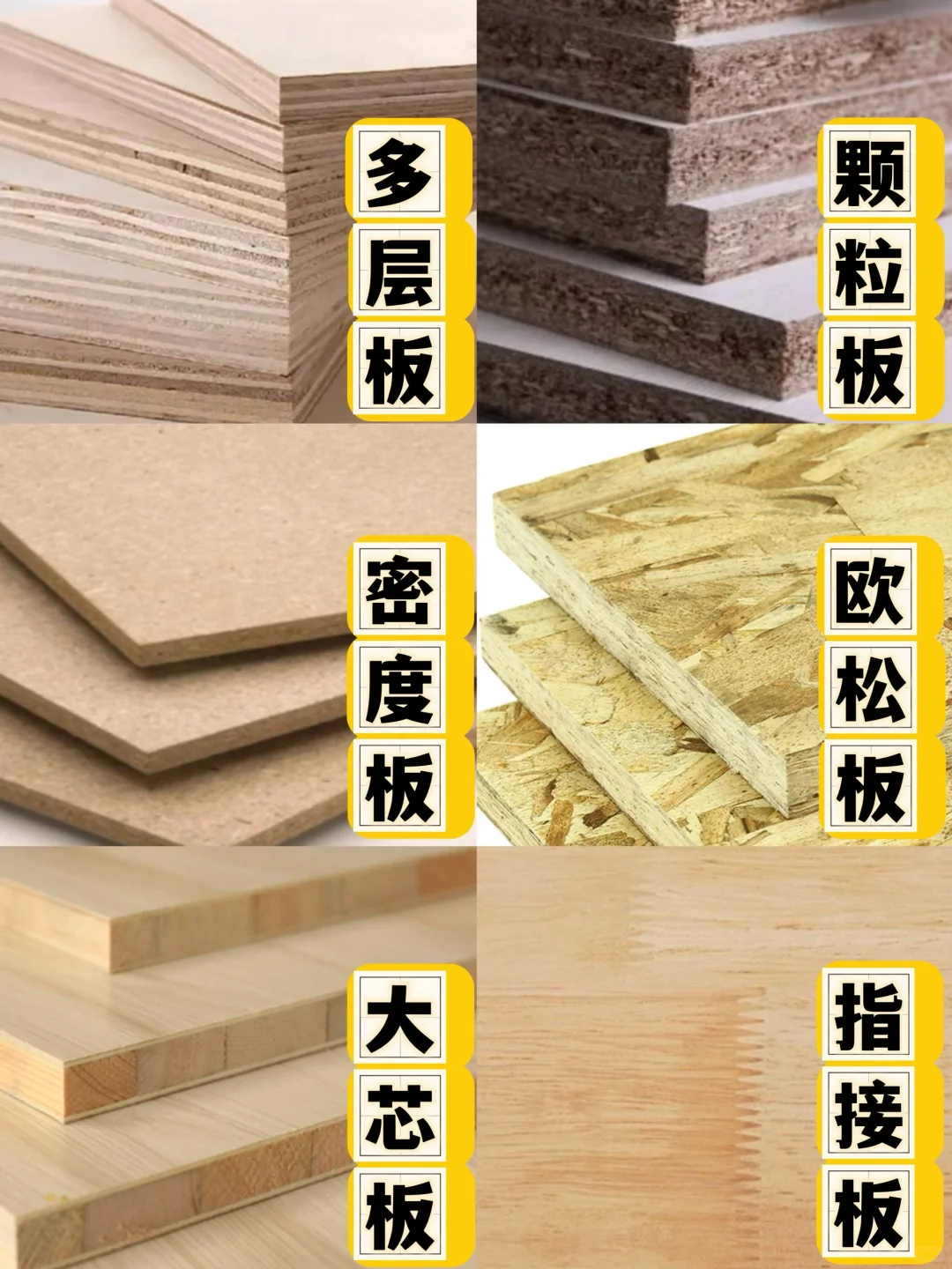密度板、颗粒板、多层板、欧松板、生态板、指接板,这些你肯定多多少少听过吧🙃