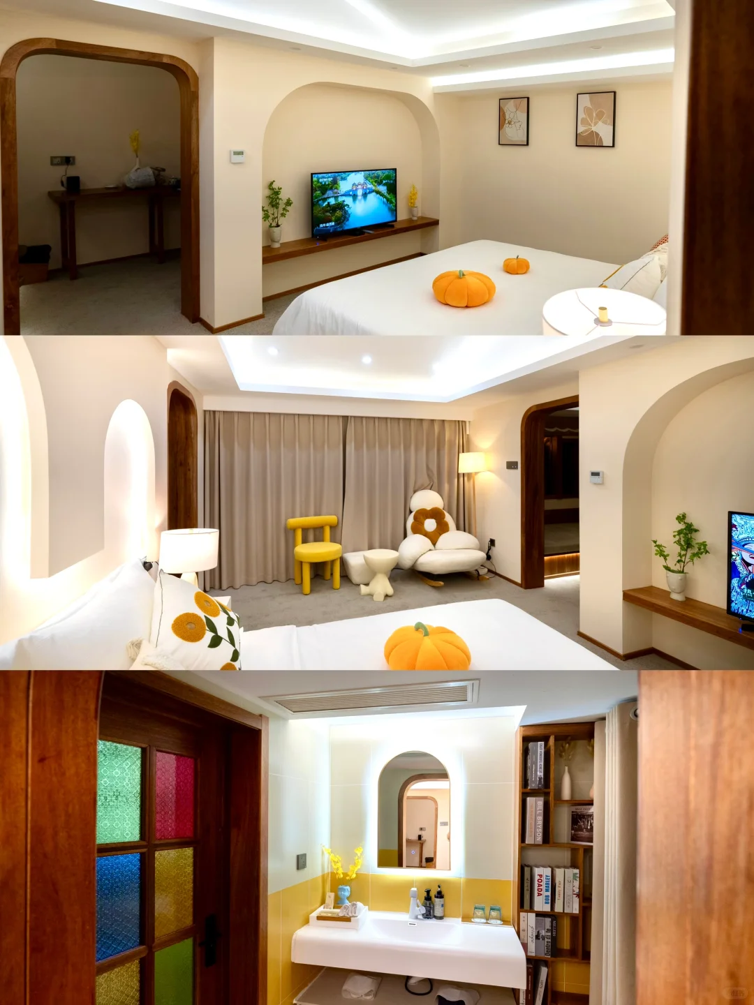 4️⃣酒店我定的是山上的晒秋美宿,开车直接上山顶,不用排队做缆车