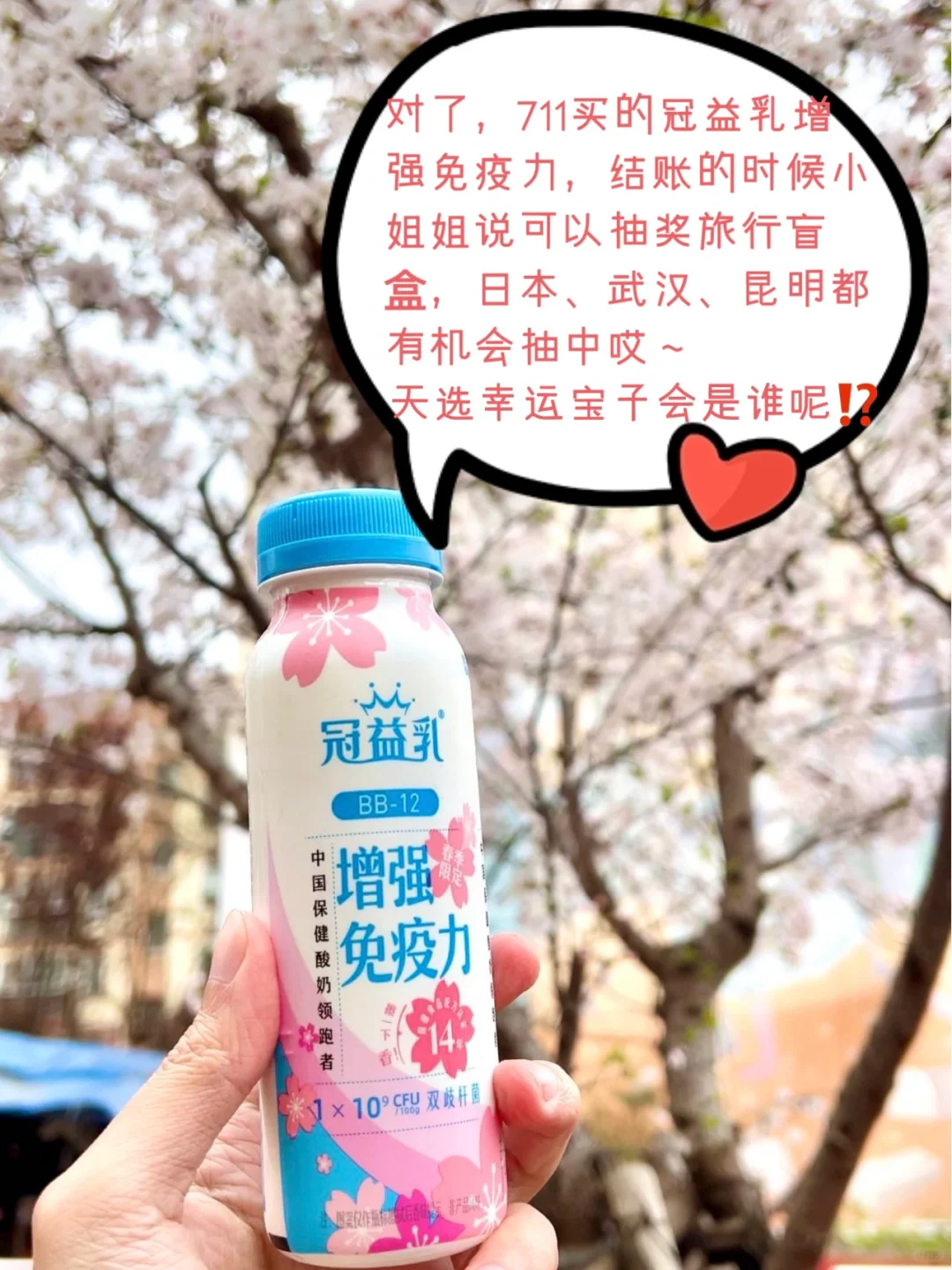 711买的冠益乳增强免疫力,结账的时候小姐姐说可以抽🎁奖旅行盲盒,日本、武汉、昆明都有机会抽中哎~天选幸运宝子会是谁呢⁉