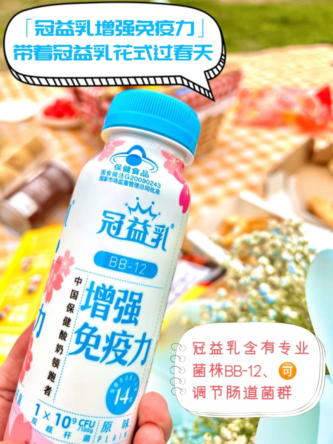 这款冠益乳增强免疫力含有专业菌株BB-12、🉑调节肠道菌群,还是保健食品酸奶,果断加入我的野餐清单😋免疫力好了才能花式过春天呀~