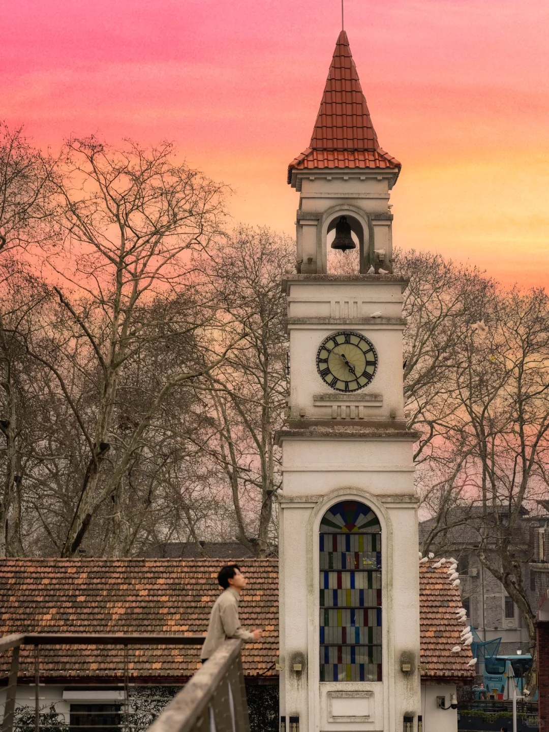 白天在标志性的钟楼下喂鸽子和p4停车场门口的银杏墙拍照都很出片