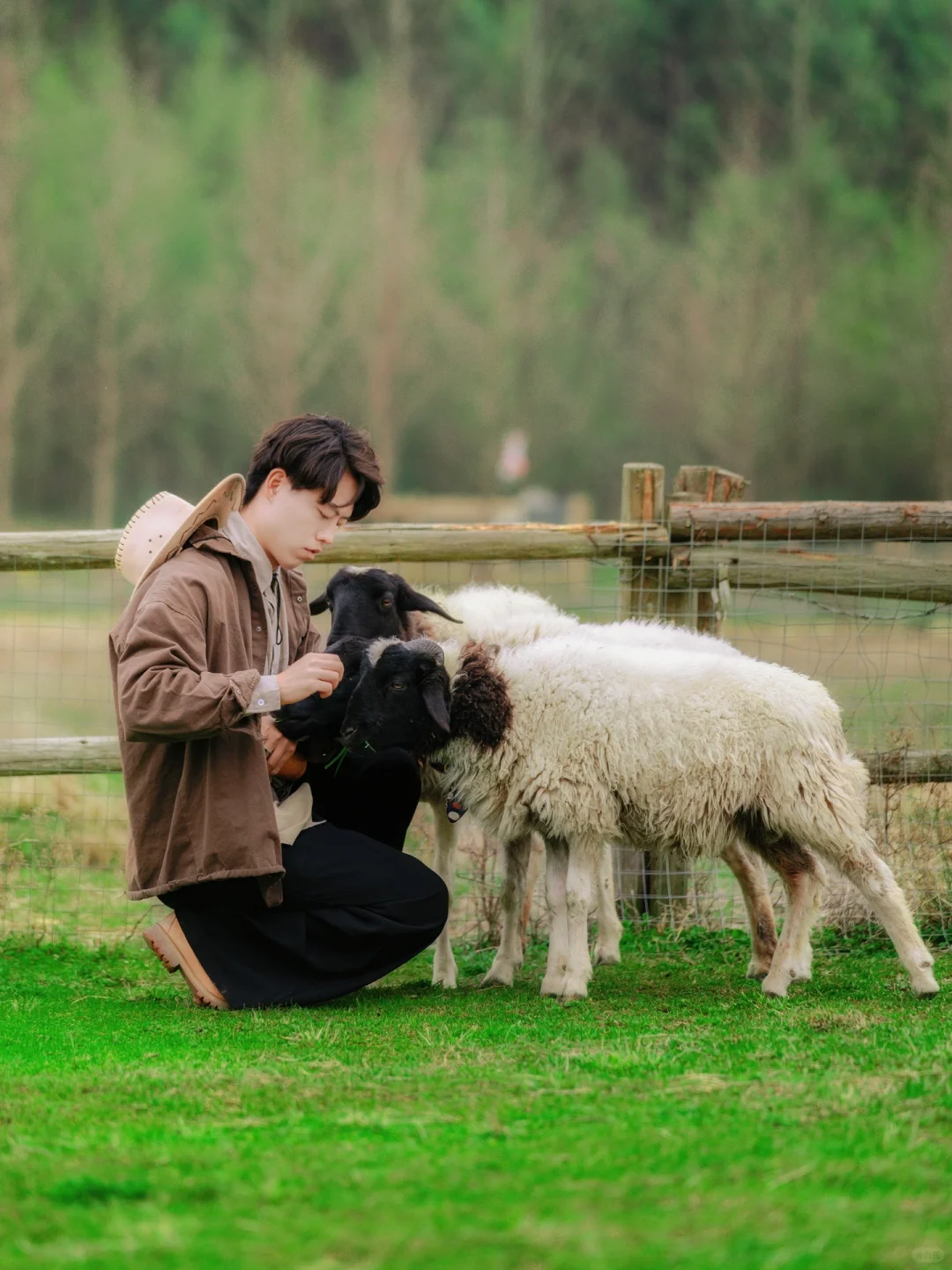 农场有大片的草地和遍地牛羊,和羊咩咩一起拍照📸