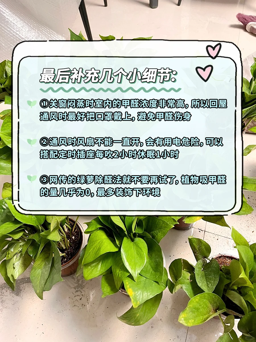 ③网传的绿萝除醛法就不要再试了,植物吸甲醛的量几乎为0,最多装饰下环境