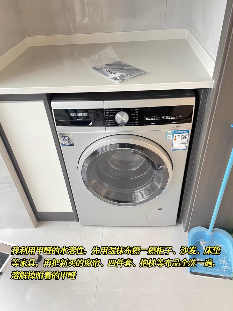 [举手R]我利用甲醛的水溶性[流汗R]先用湿抹布擦一擦柜子、沙发、床垫等家具,再把新买的窗帘、四件套、抱枕等布品全洗一遍,能中和掉表面附着的甲醛