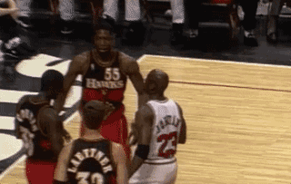 乔丹隔扣完穆大叔后对他摇手指挑衅,以其人之道,还治其人之身!