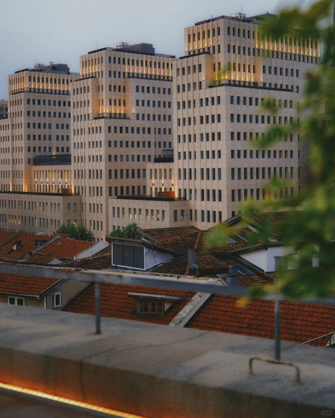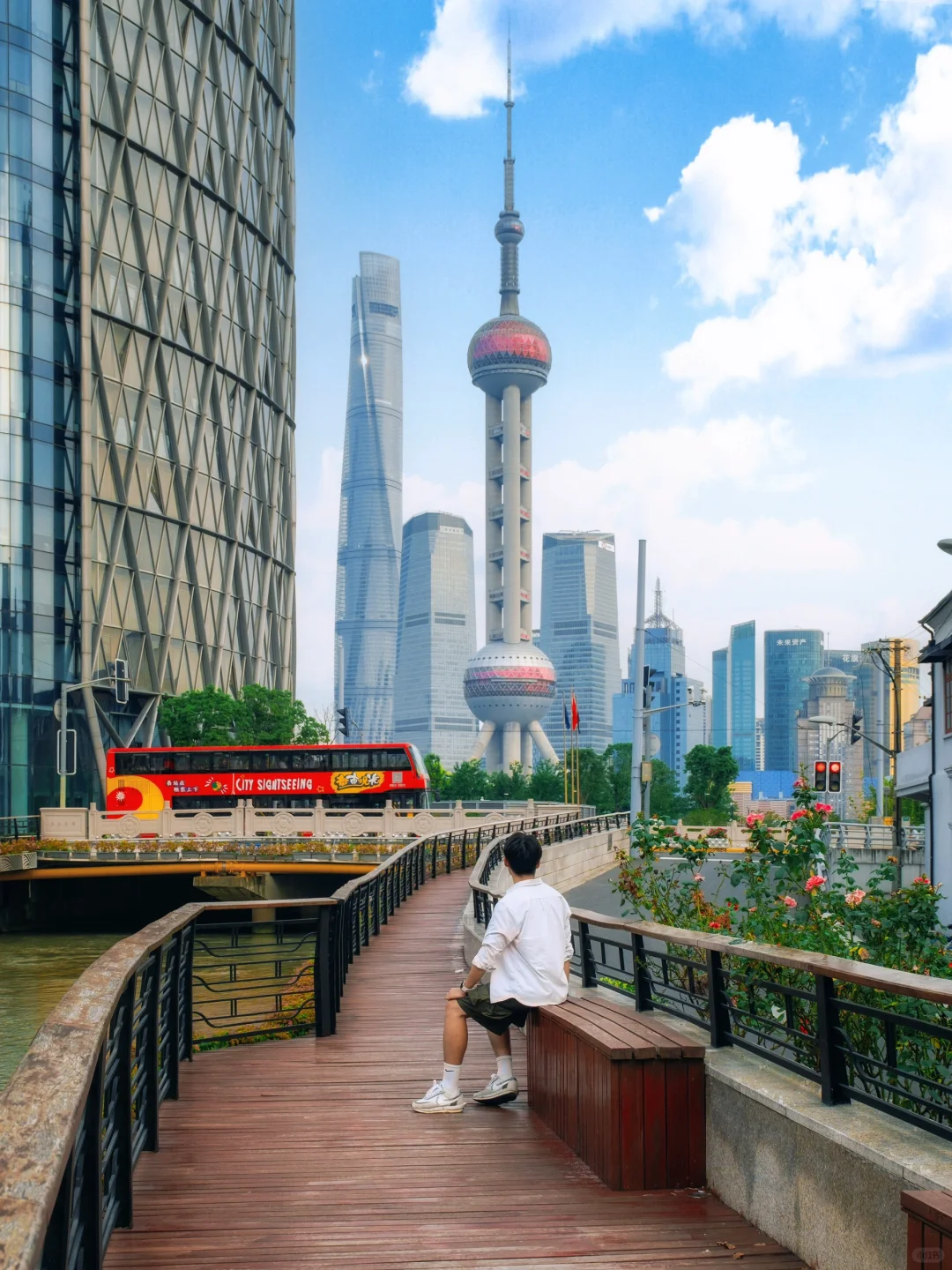 平安里的老建筑和陆家嘴四件套同框,人物可以站在沿河的栏杆边,非常出片